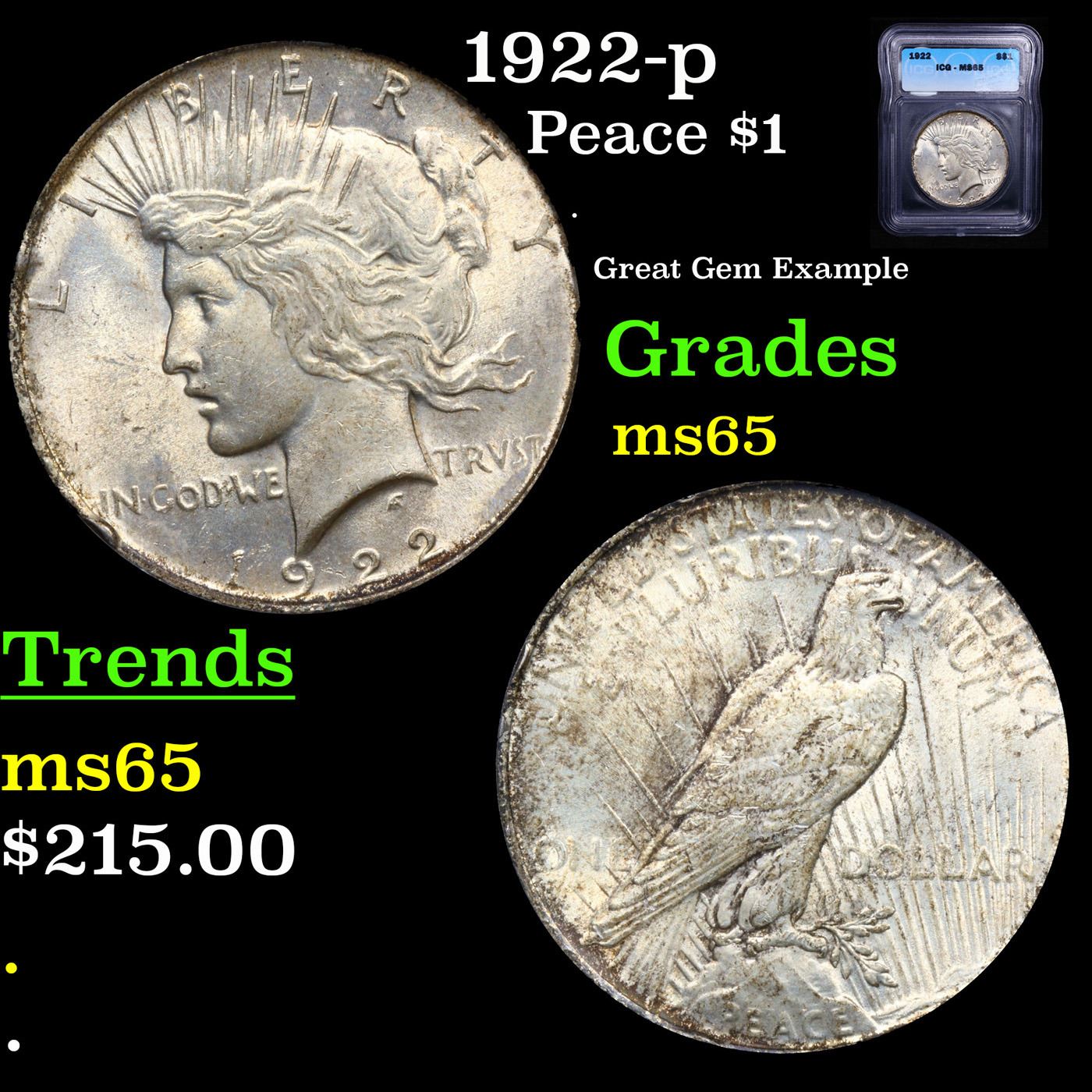 1922-p Peace Dollar $1 Graded ms65 By ICG.