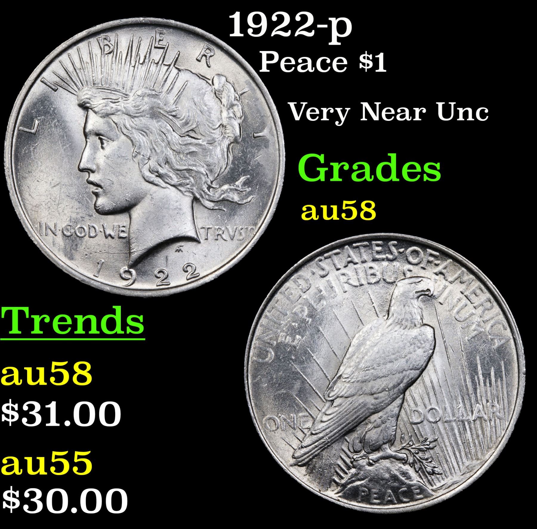 1922-p Peace Dollar $1 Grades Choice AU/BU Slider.