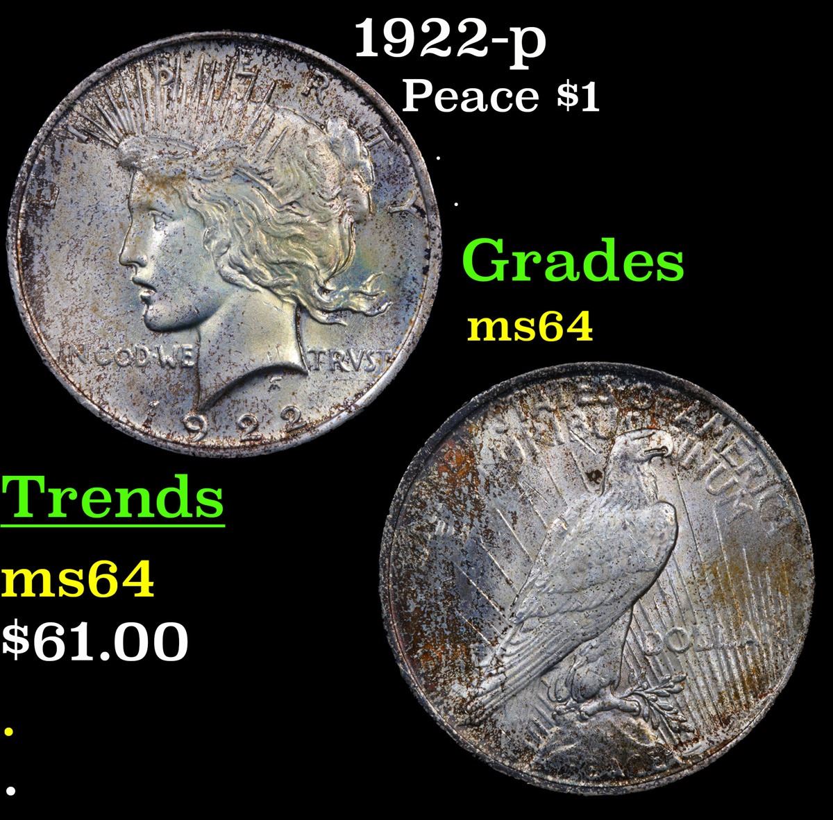 1922-p Peace Dollar $1 Grades Choice Unc.