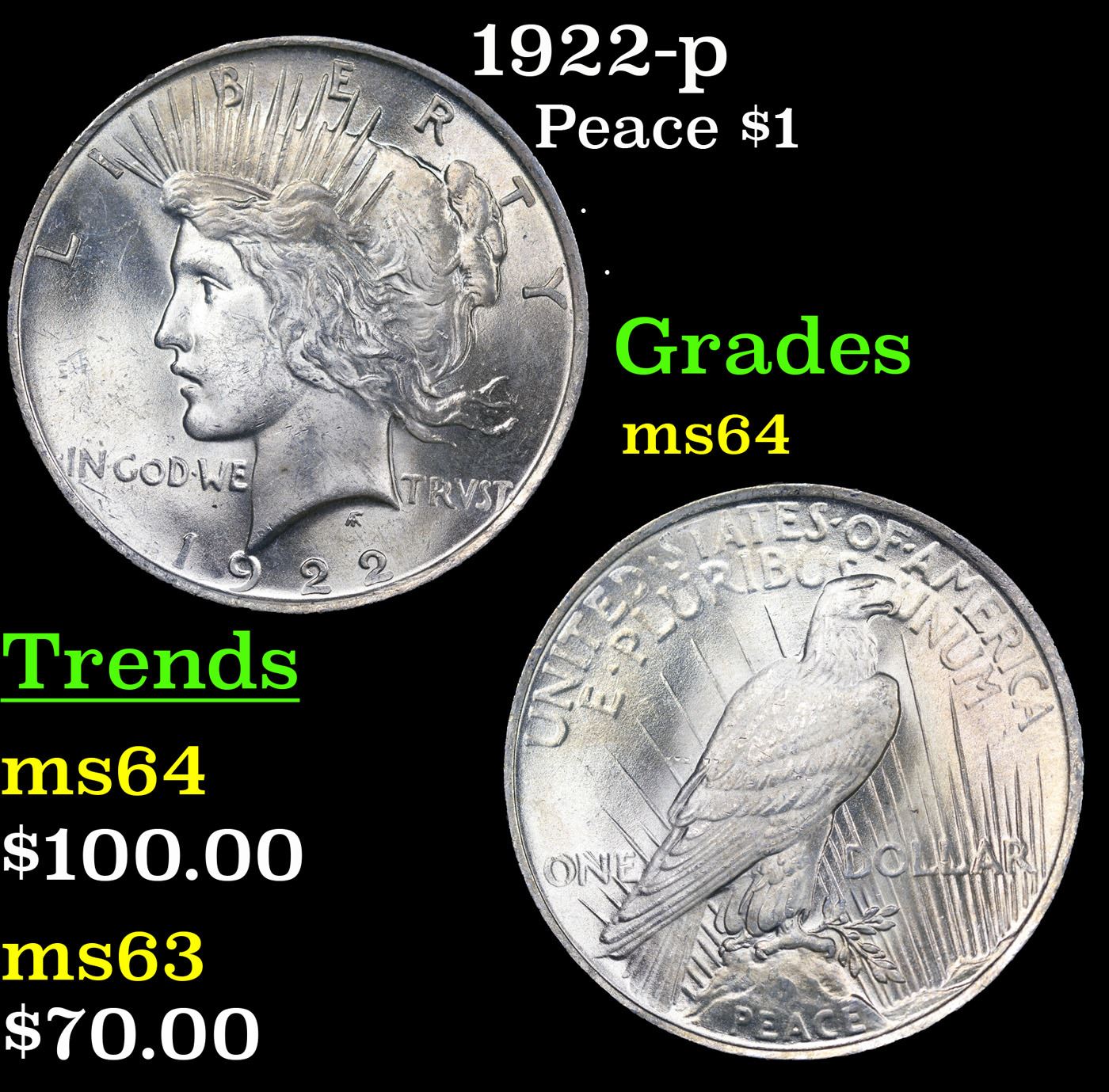 1922-p Peace Dollar $1 Grades Choice Unc.