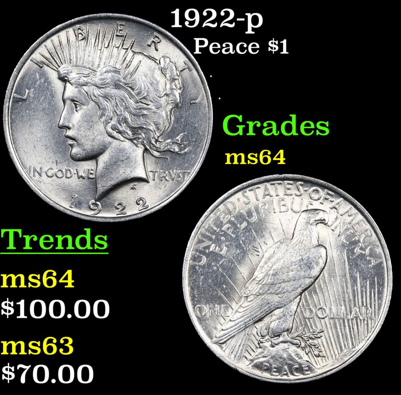 1922-p Peace Dollar $1 Grades Choice Unc.