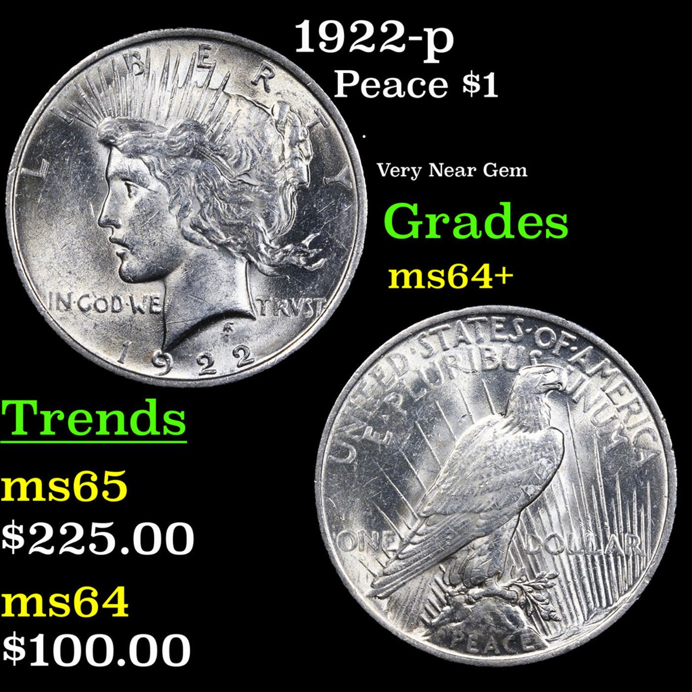 1922-p Peace Dollar $1 Grades Choice+ Unc.