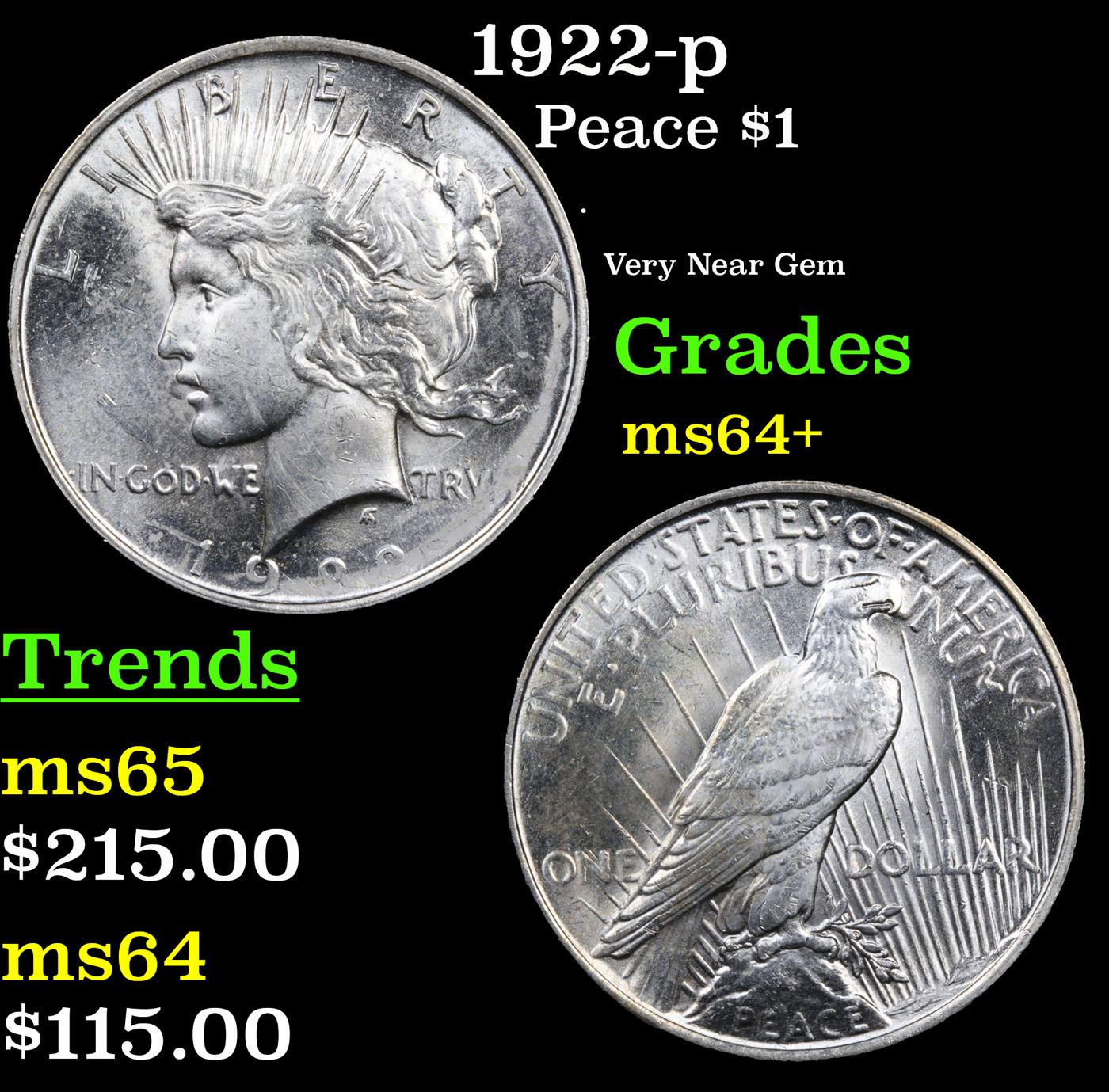 1922-p Peace Dollar $1 Grades Choice+ Unc.