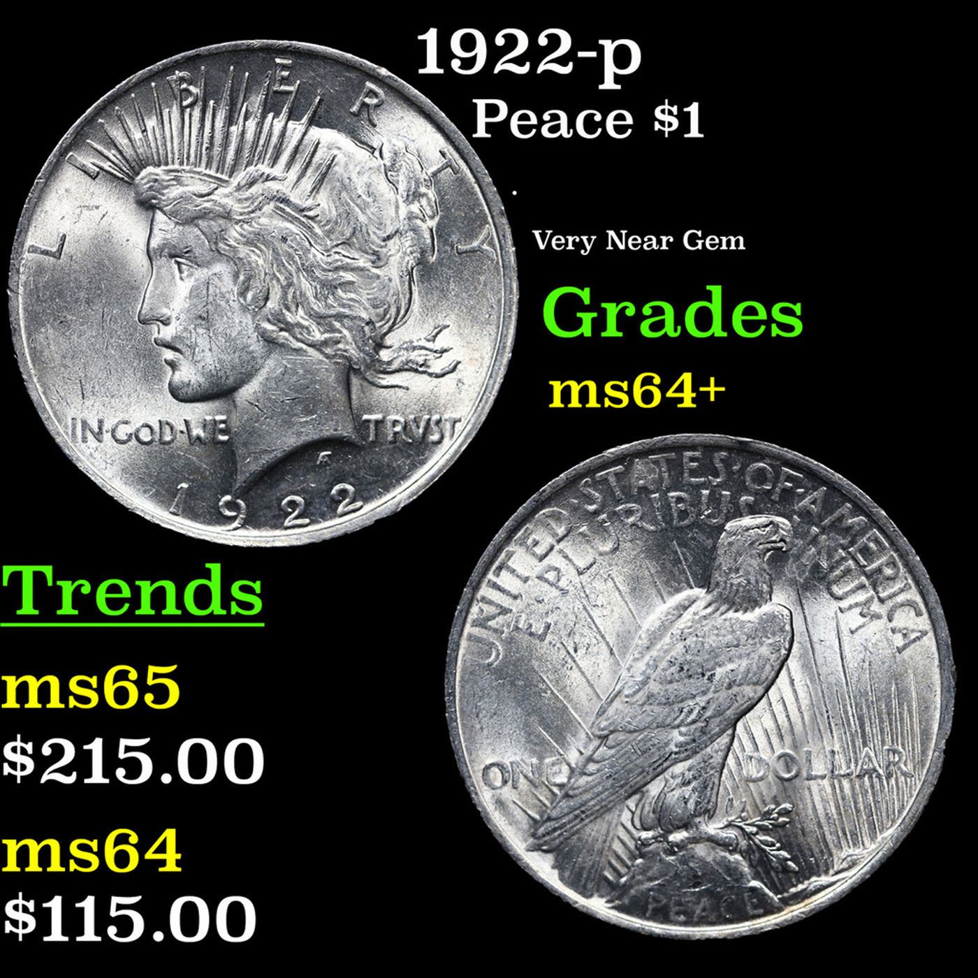 1922-p Peace Dollar $1 Grades Choice+ Unc.