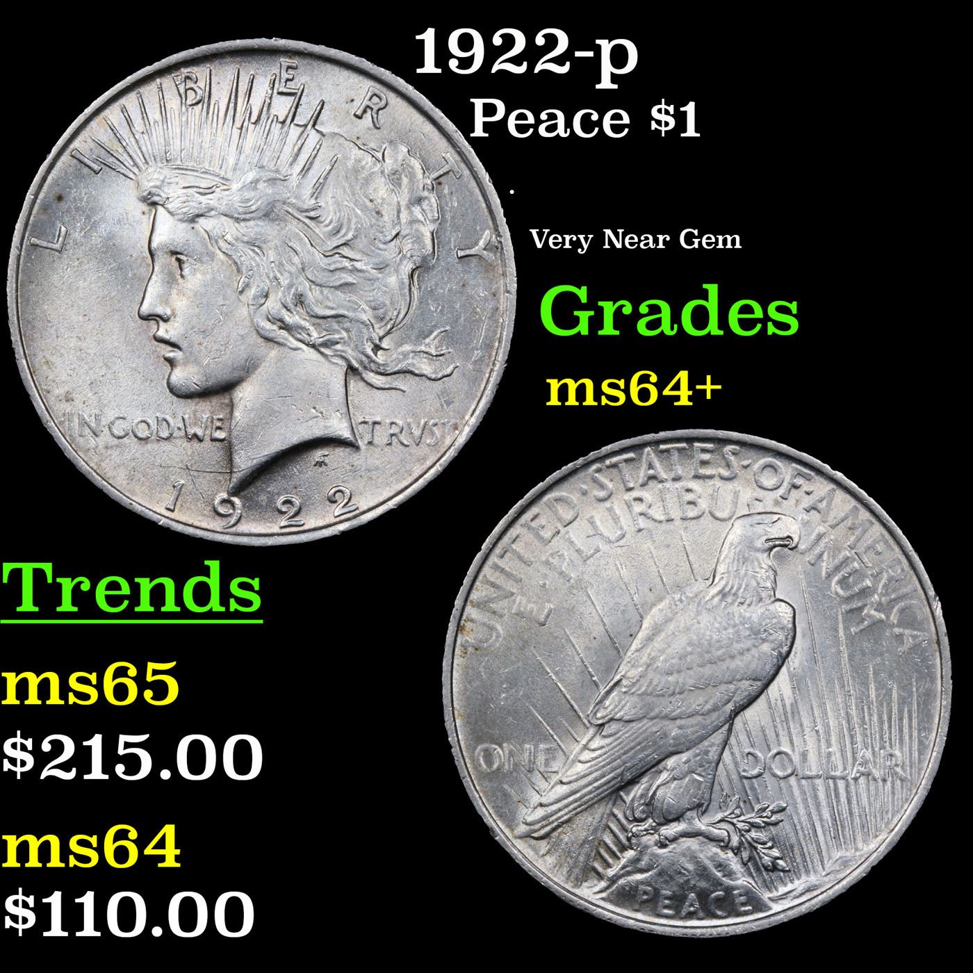 1922-p Peace Dollar $1 Grades Choice+ Unc.
