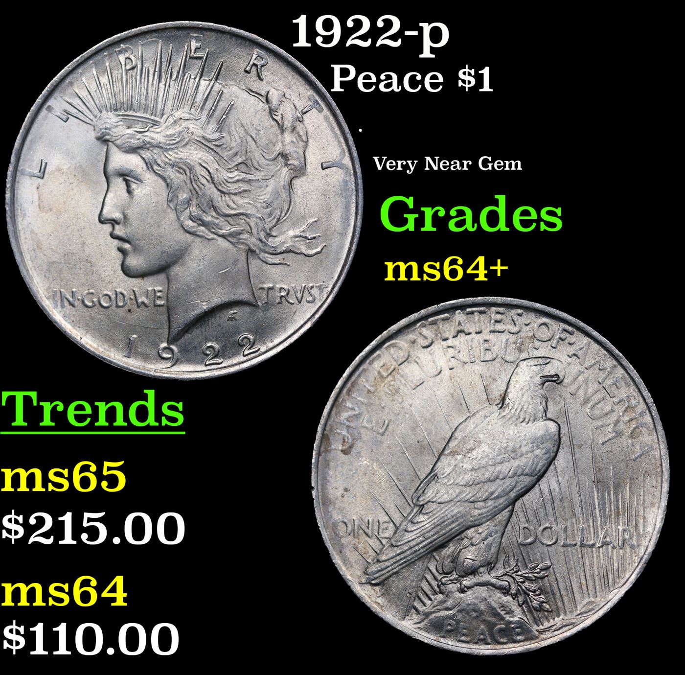 1922-p Peace Dollar $1 Grades Choice+ Unc.