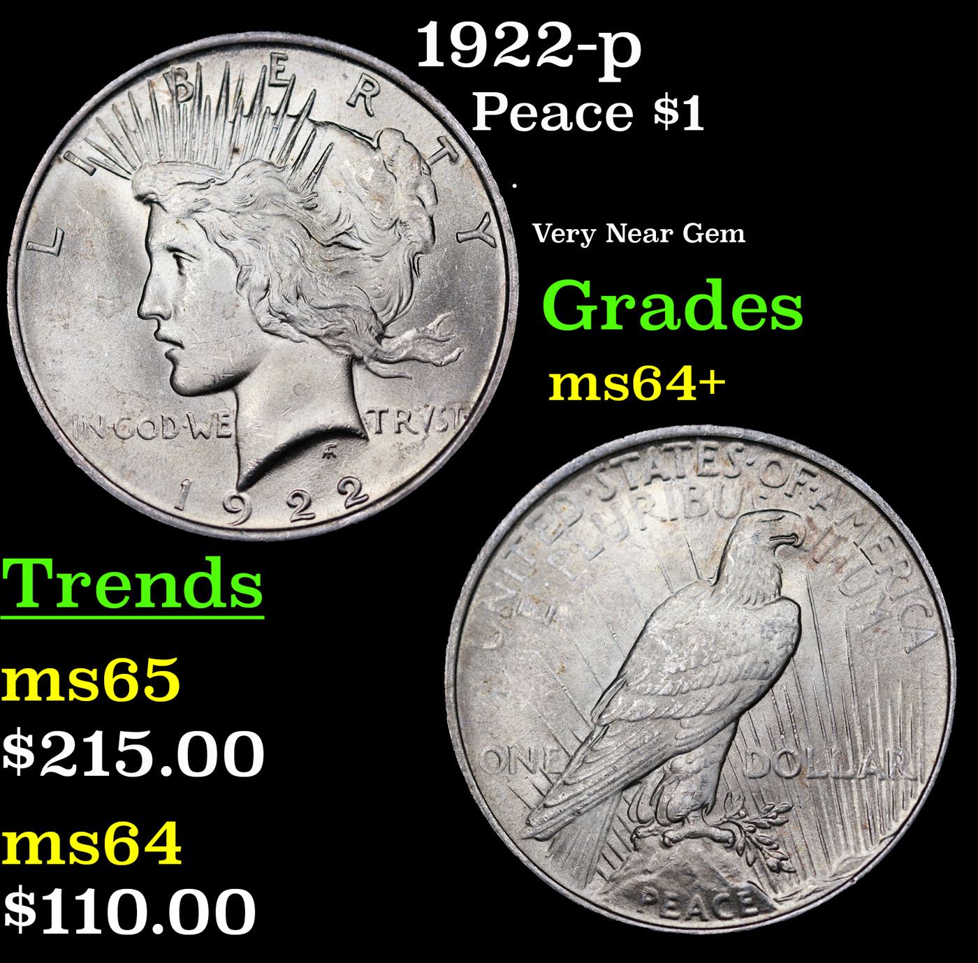 1922-p Peace Dollar $1 Grades Choice+ Unc.