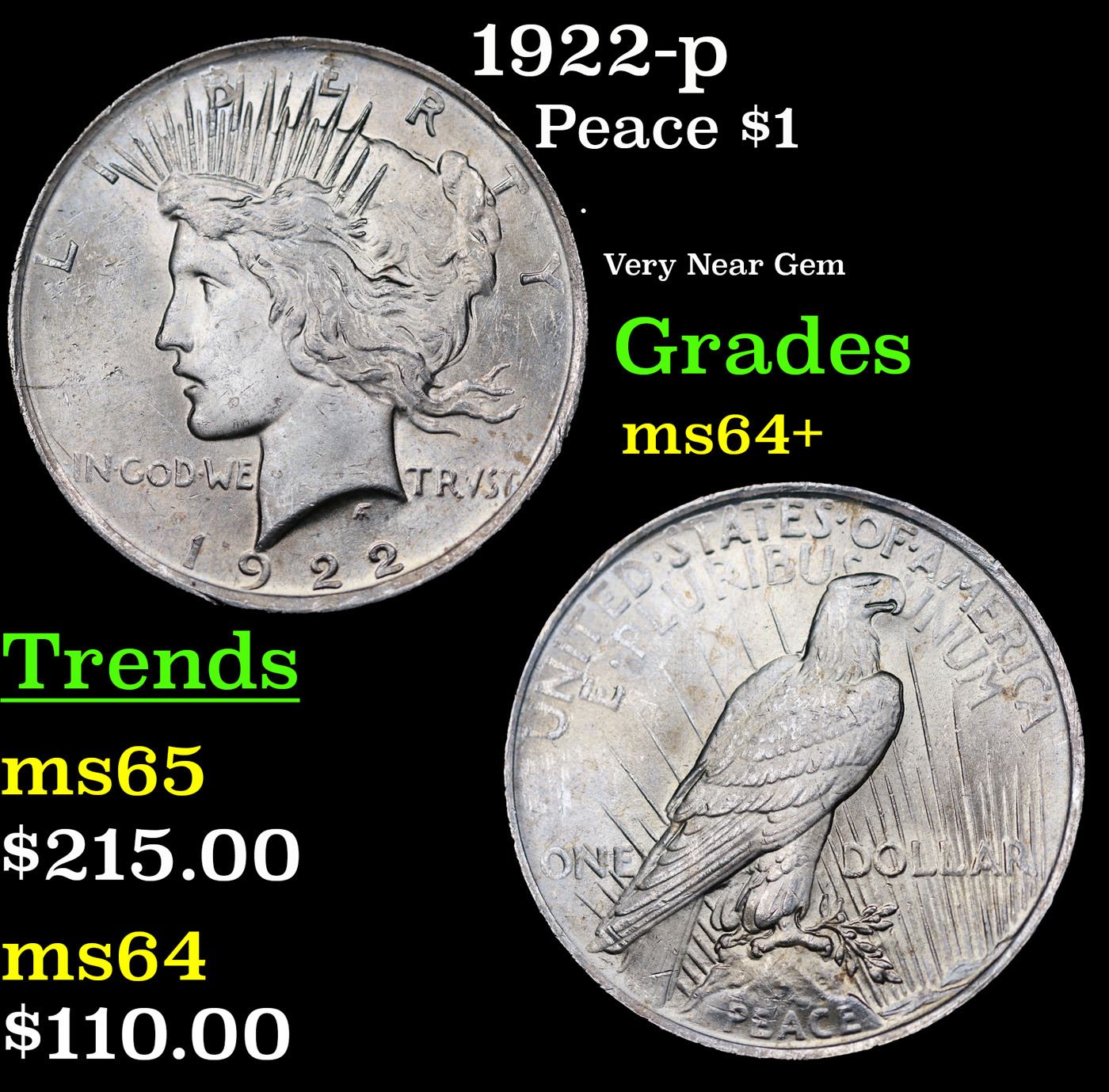 1922-p Peace Dollar $1 Grades Choice+ Unc.