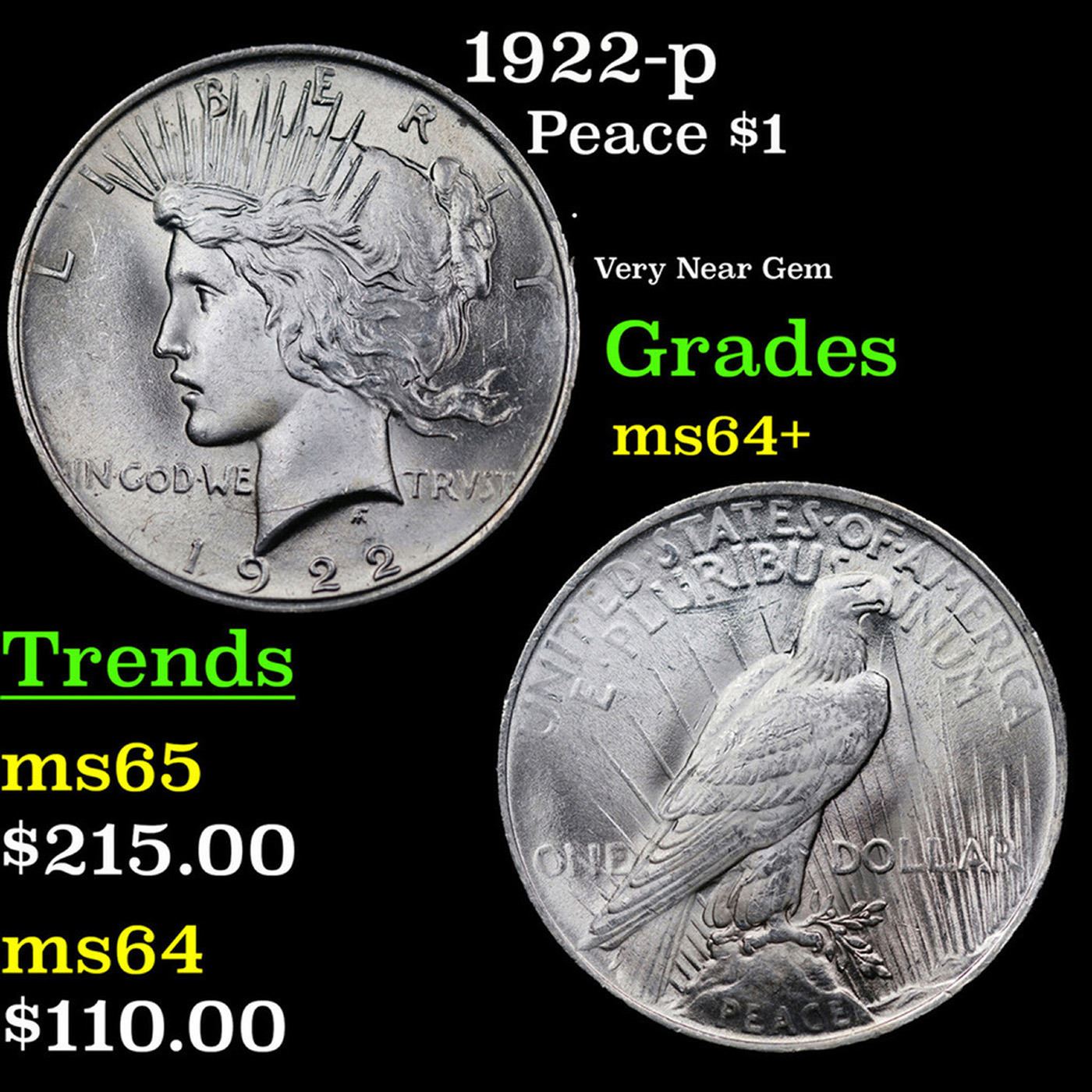 1922-p Peace Dollar $1 Grades Choice+ Unc.