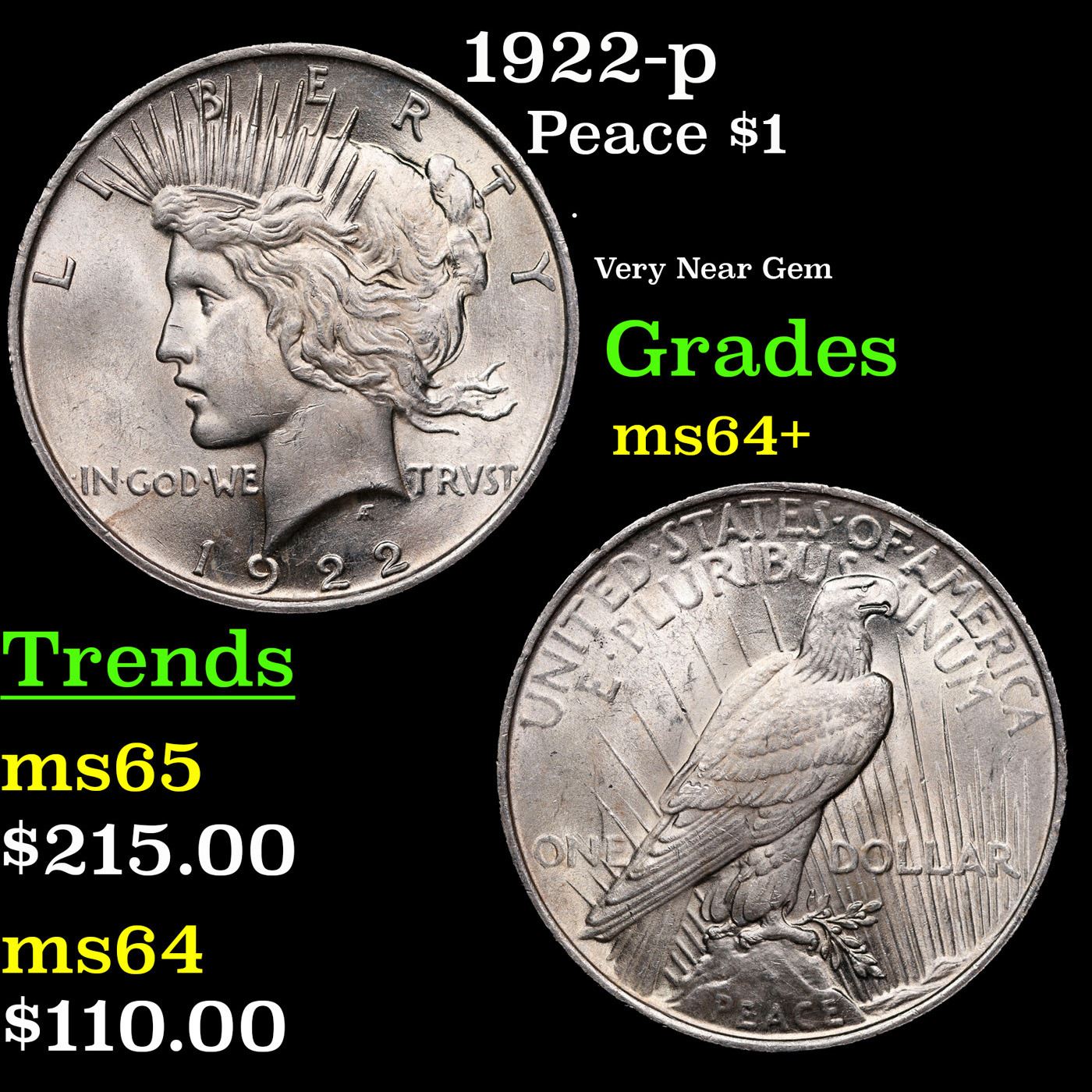 1922-p Peace Dollar $1 Grades Choice+ Unc.