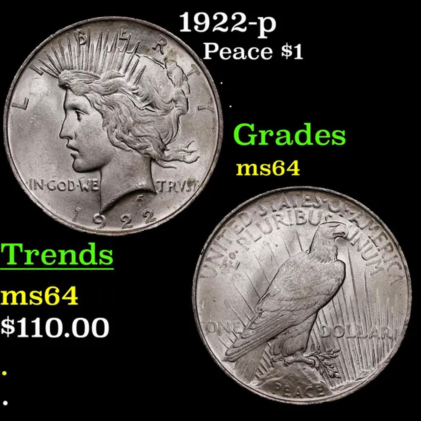 1922-p Peace Dollar $1 Grades Choice Unc.