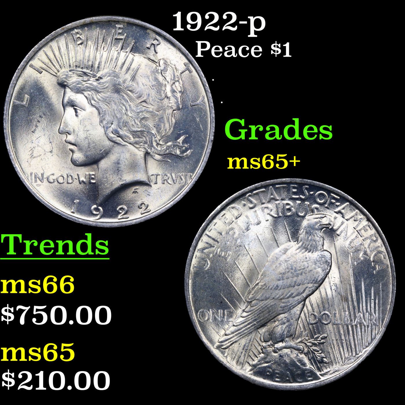 1922-p Peace Dollar $1 Grades GEM+ Unc.