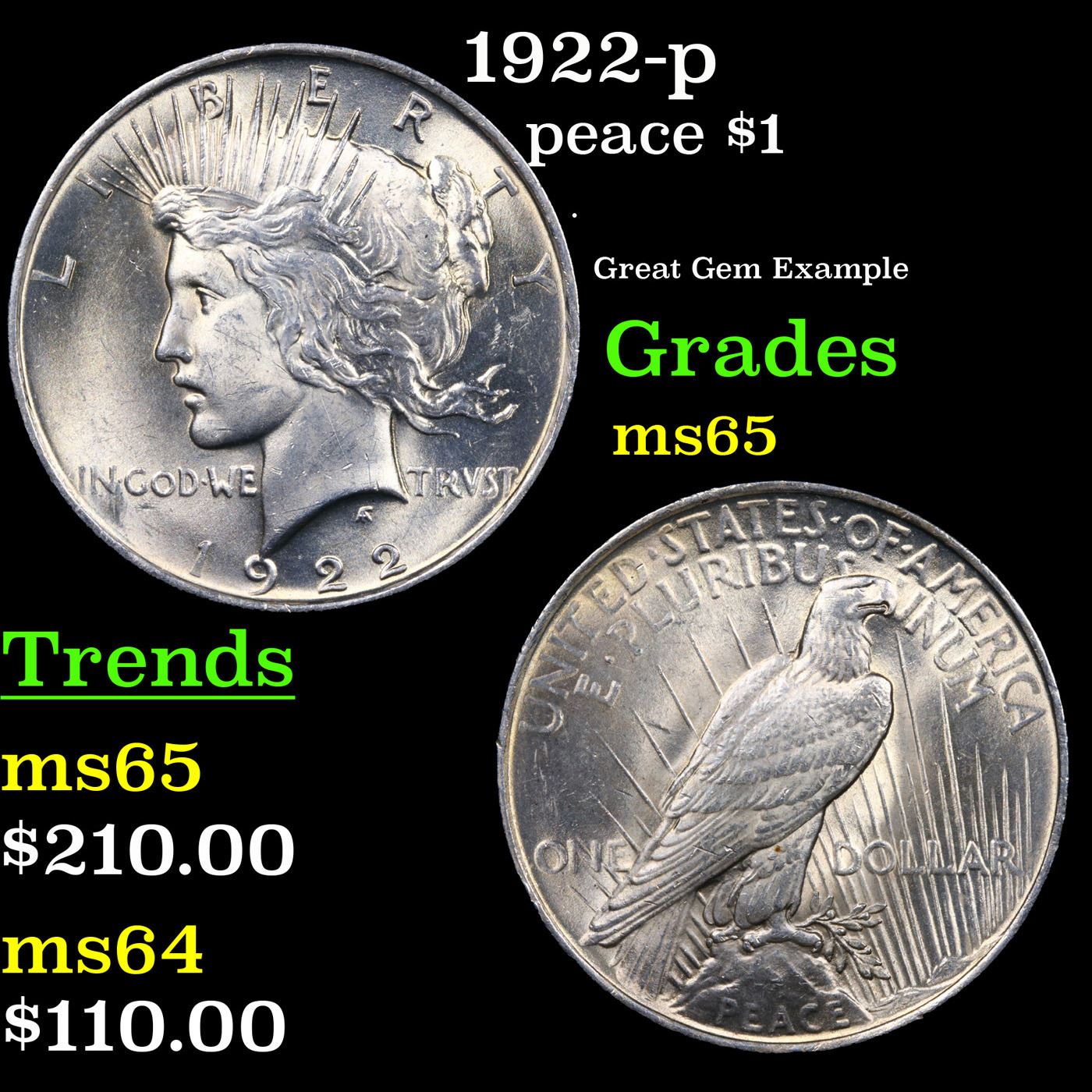 1922-p Peace Dollar $1 Grades GEM Unc.