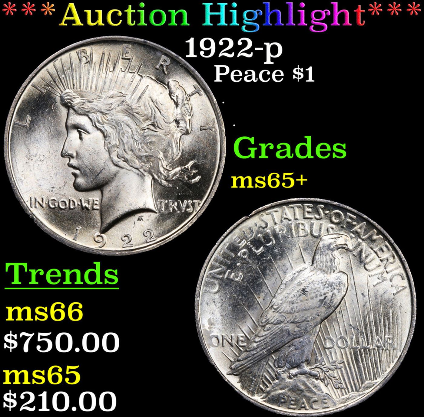 1922-p Peace Dollar $1 Grades GEM+ Unc.