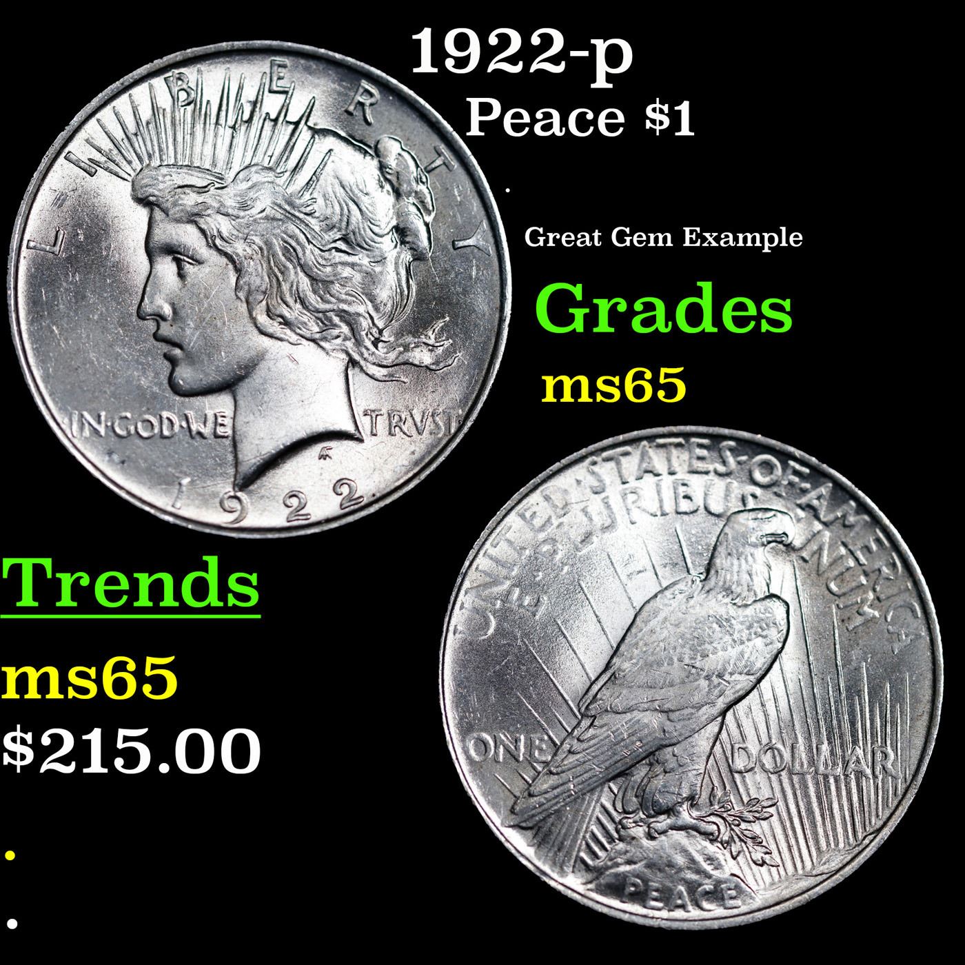 1922-p Peace Dollar $1 Grades GEM Unc.
