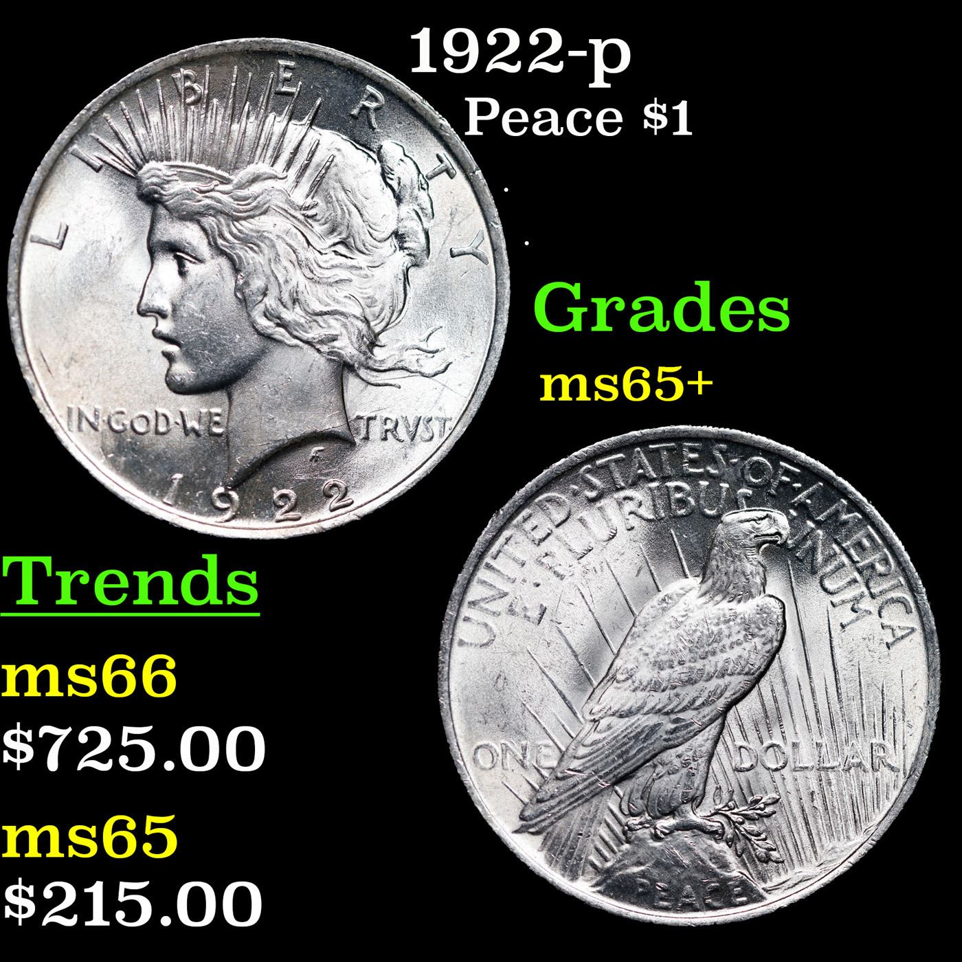 1922-p Peace Dollar $1 Grades GEM+ Unc.