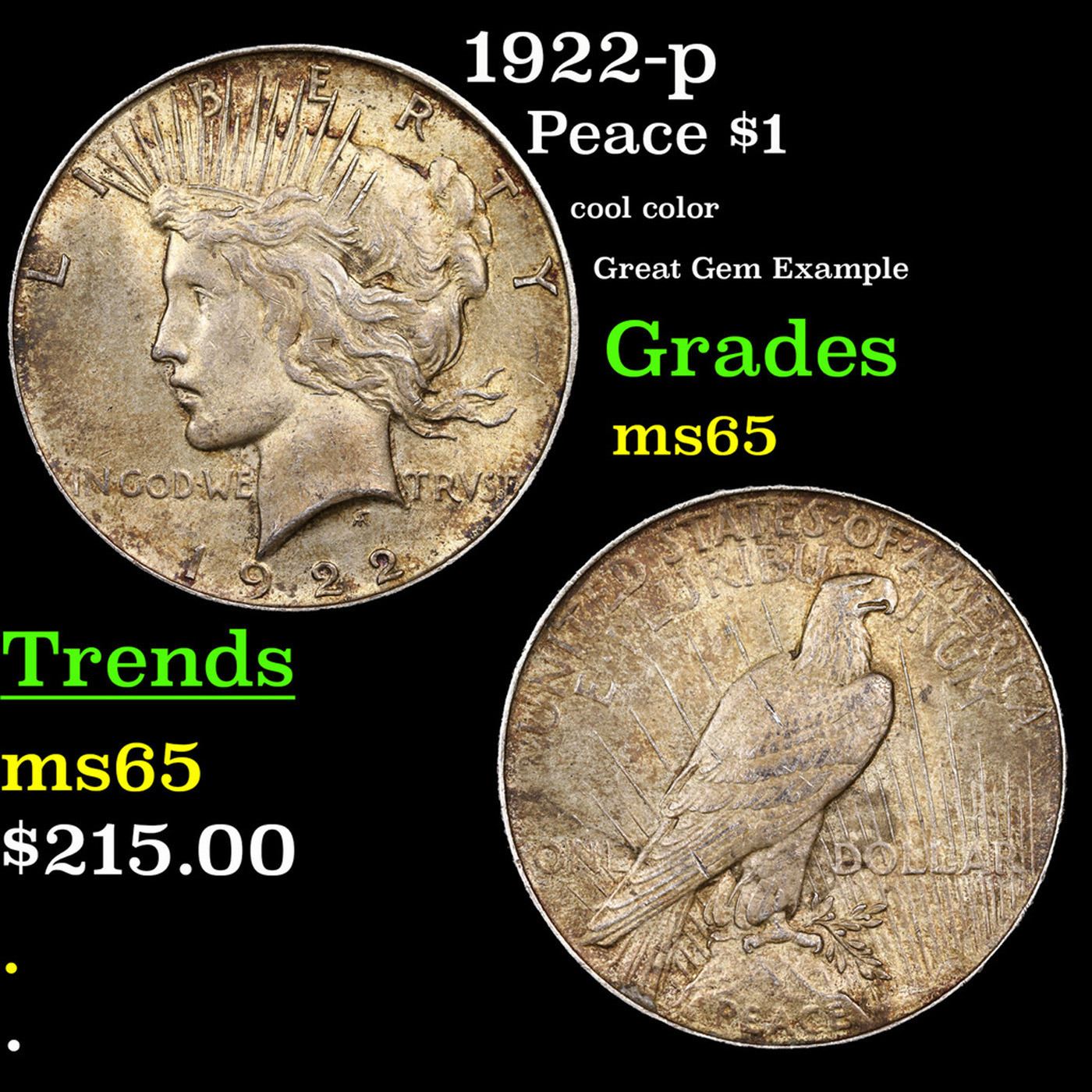 1922-p Peace Dollar $1 Grades GEM Unc.