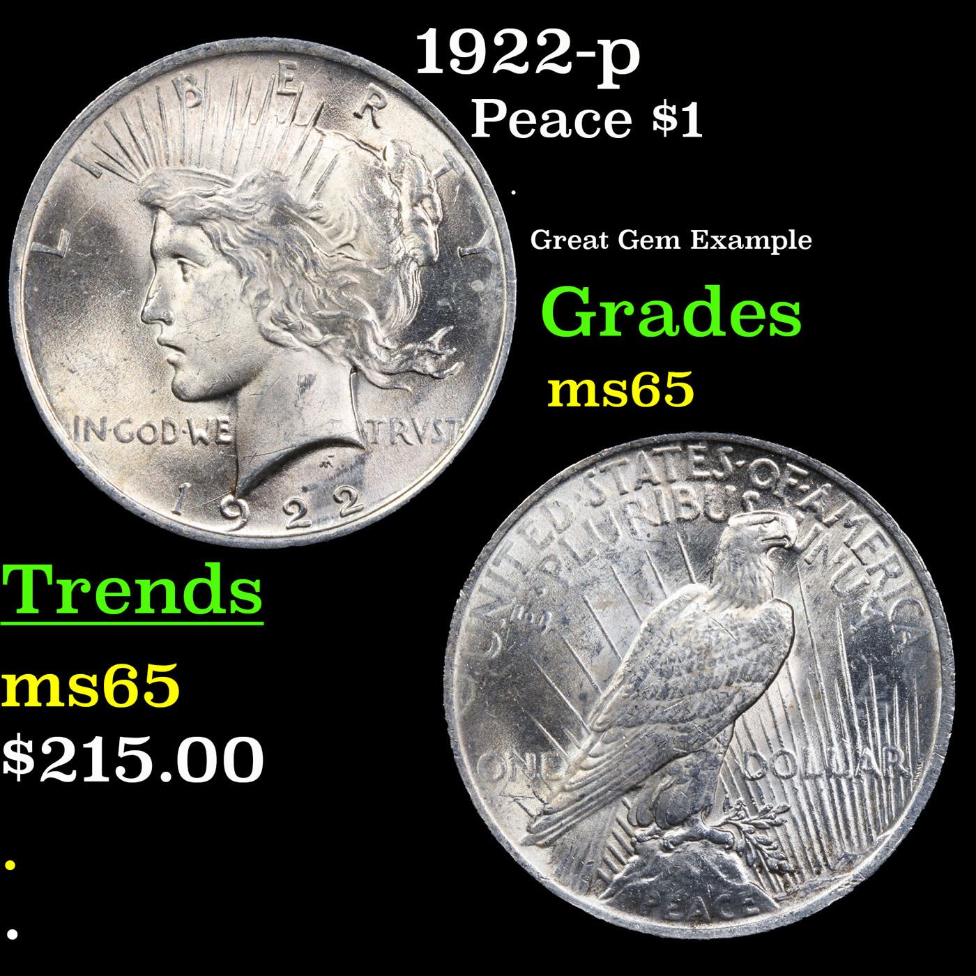 1922-p Peace Dollar $1 Grades GEM Unc.