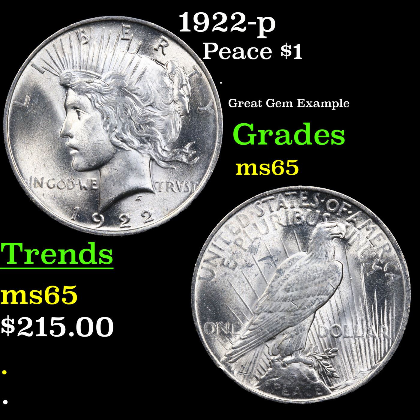 1922-p Peace Dollar $1 Grades GEM Unc.