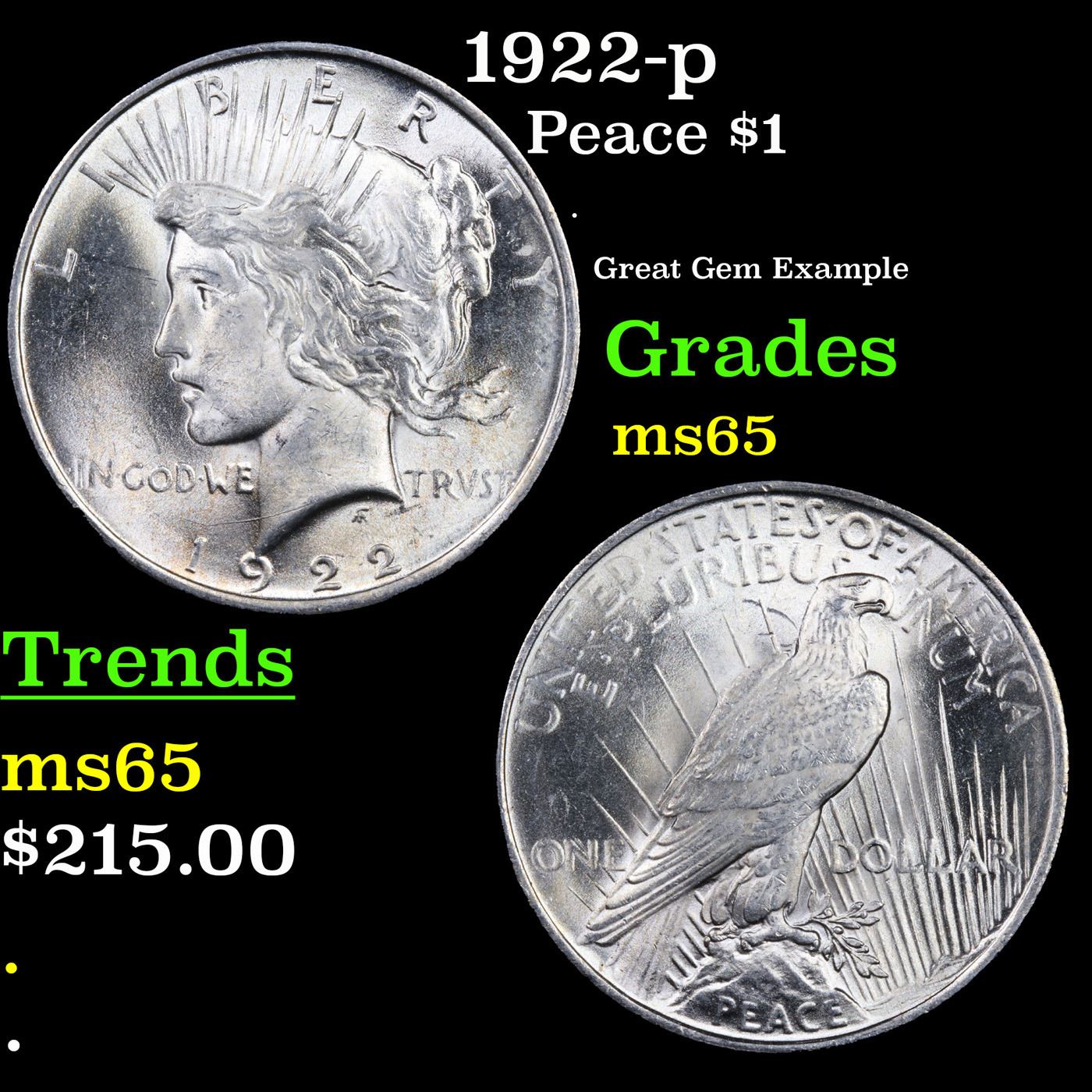 1922-p Peace Dollar $1 Grades GEM Unc.
