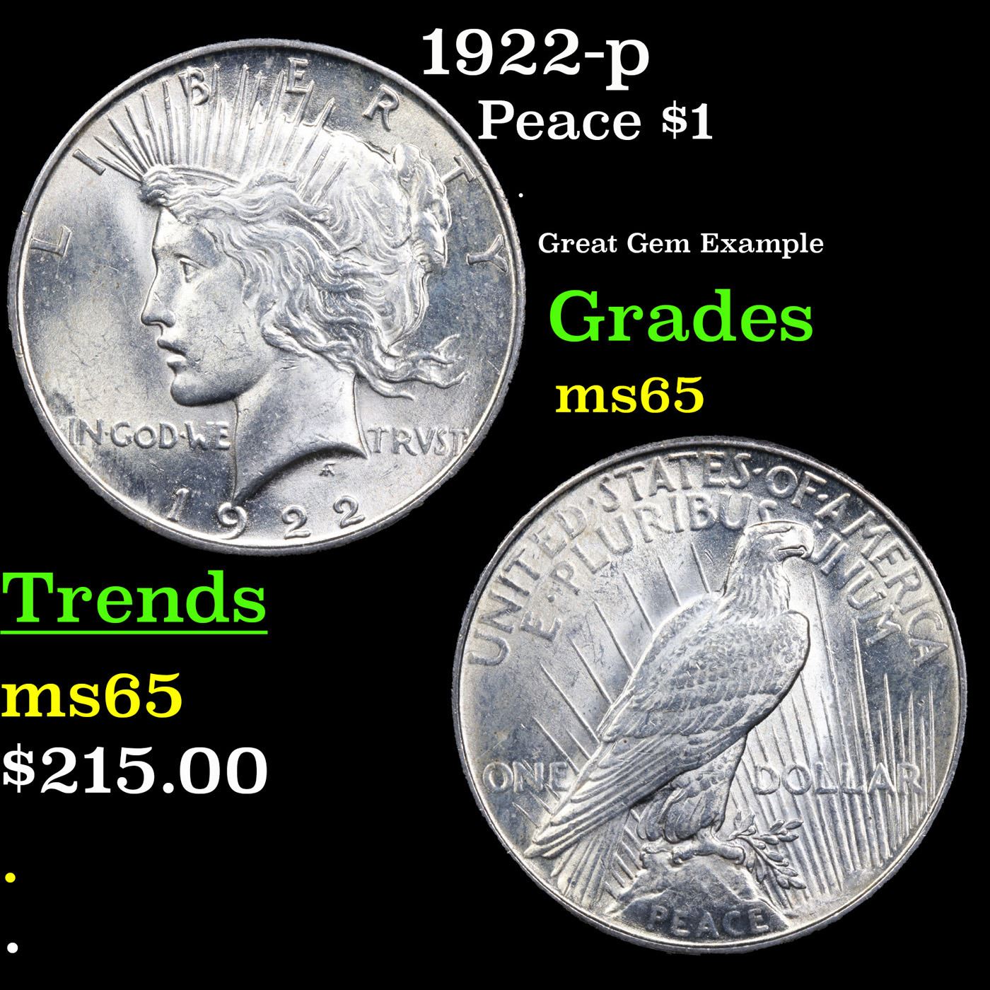 1922-p Peace Dollar $1 Grades GEM Unc.