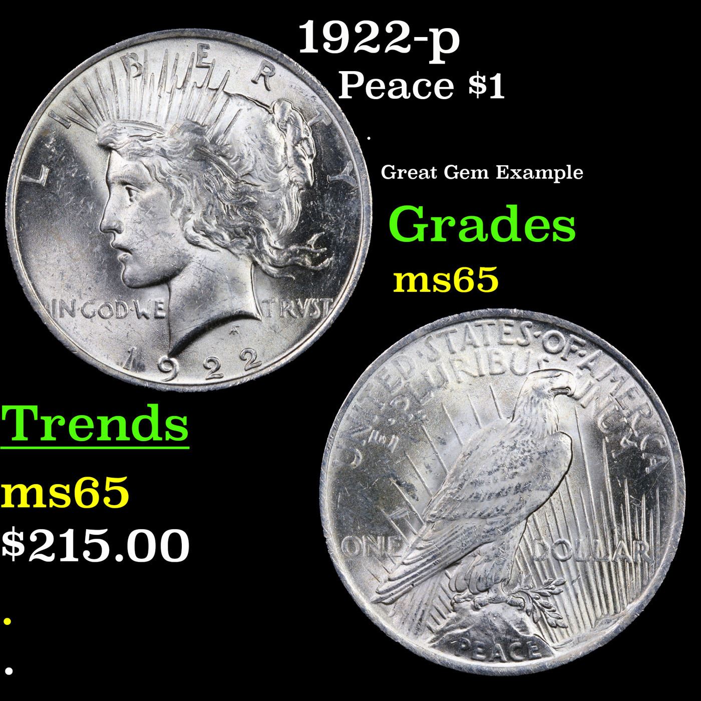 1922-p Peace Dollar $1 Grades GEM Unc.