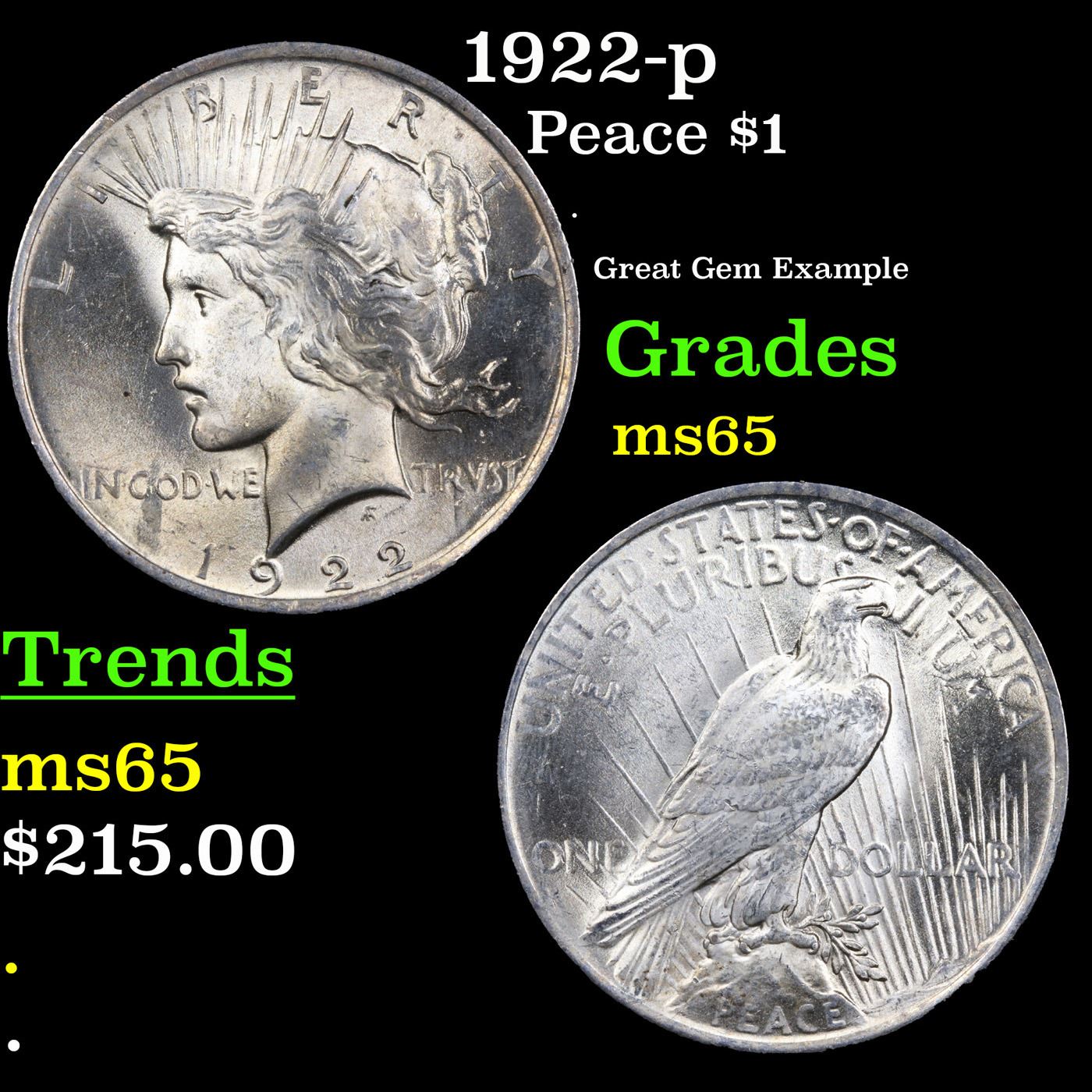 1922-p Peace Dollar $1 Grades GEM Unc.