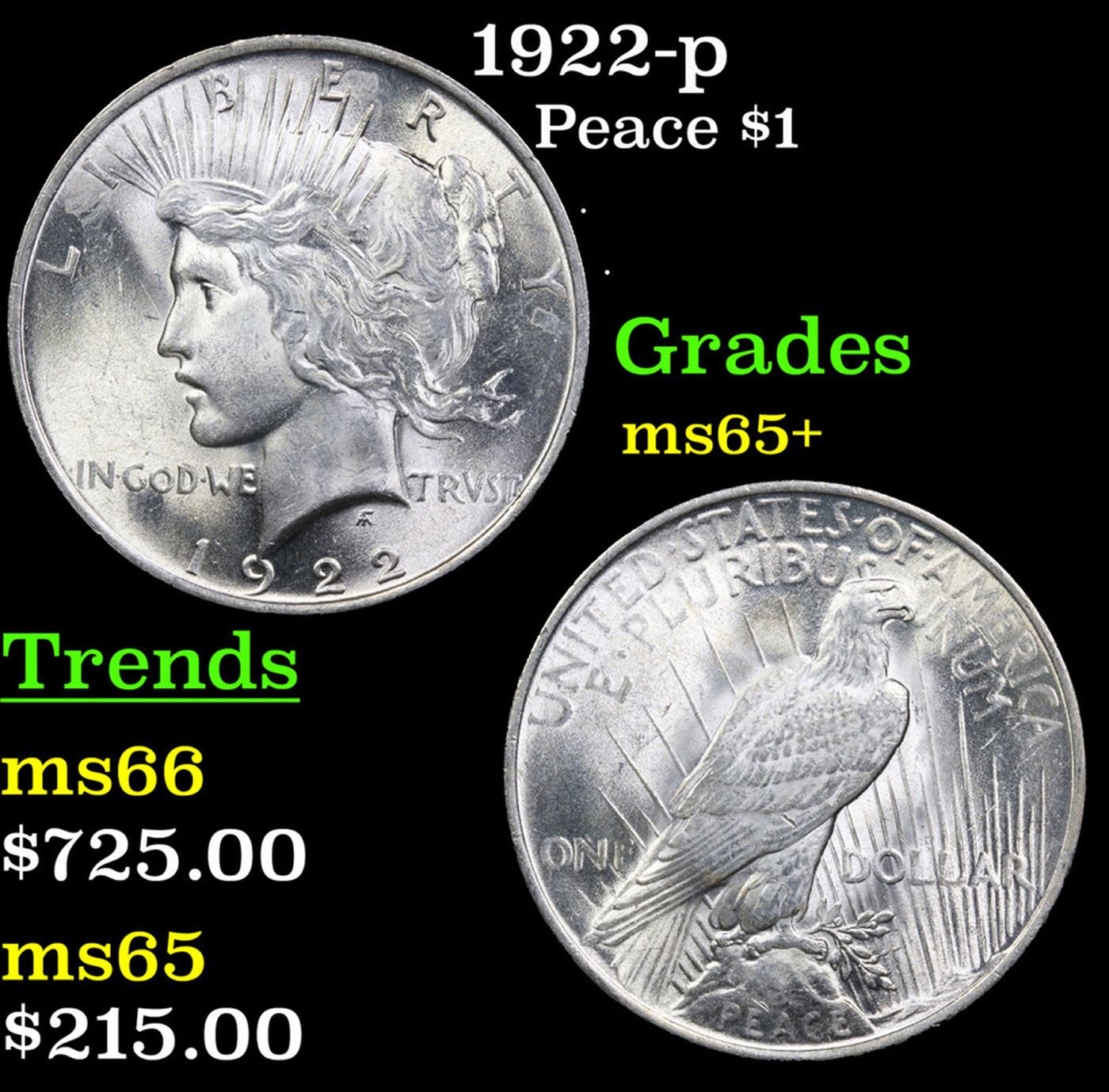 1922-p Peace Dollar $1 Grades GEM+ Unc.