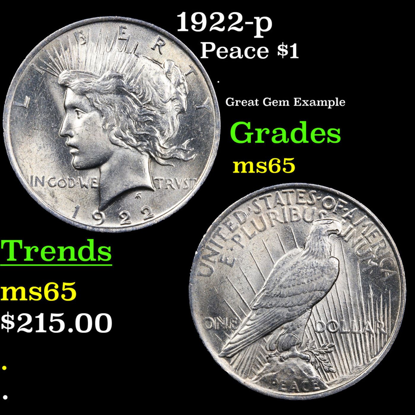 1922-p Peace Dollar $1 Grades GEM Unc.