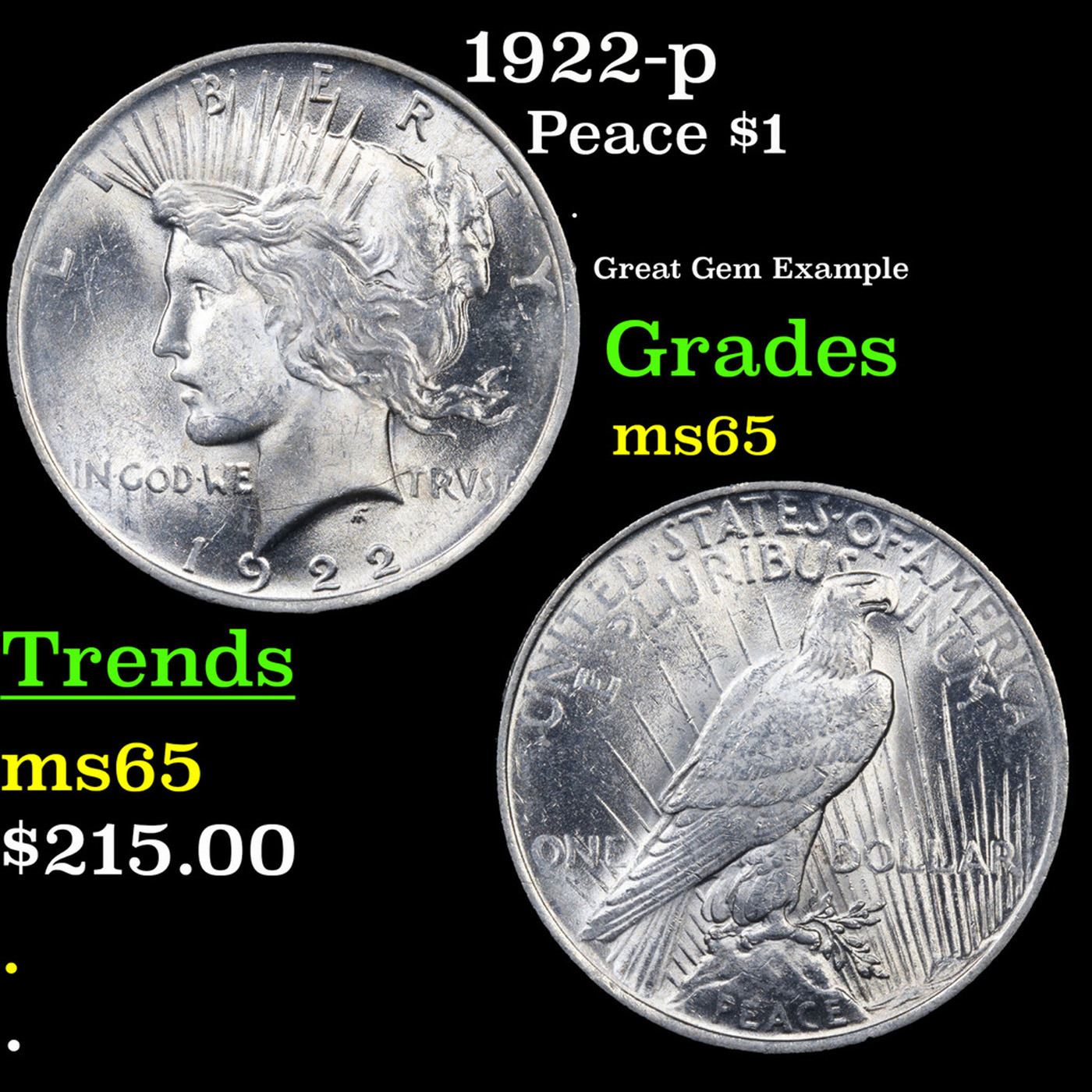 1922-p Peace Dollar $1 Grades GEM Unc.