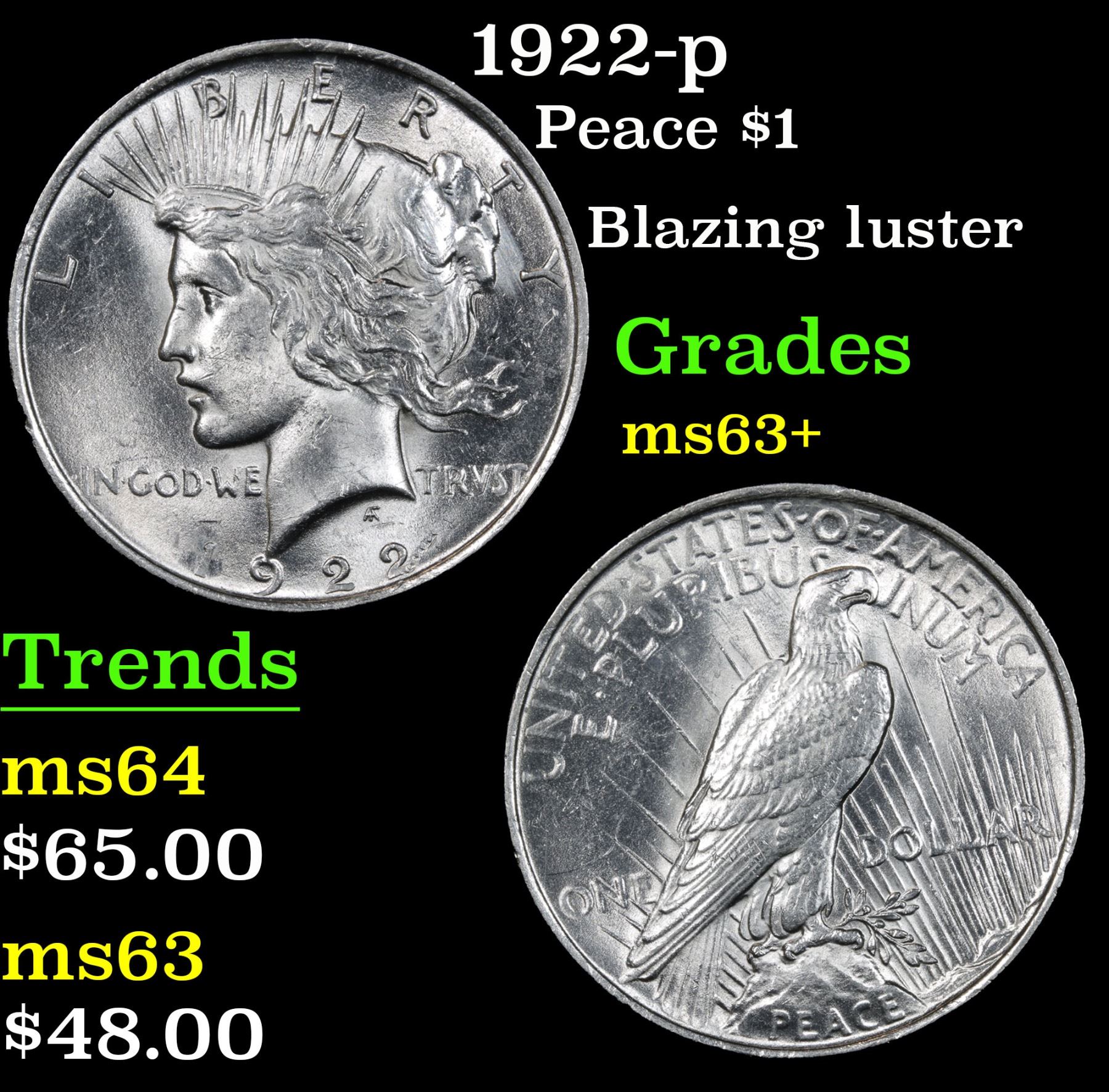 1922-p Peace Dollar $1 Grades Select+ Unc. Blazing luster
