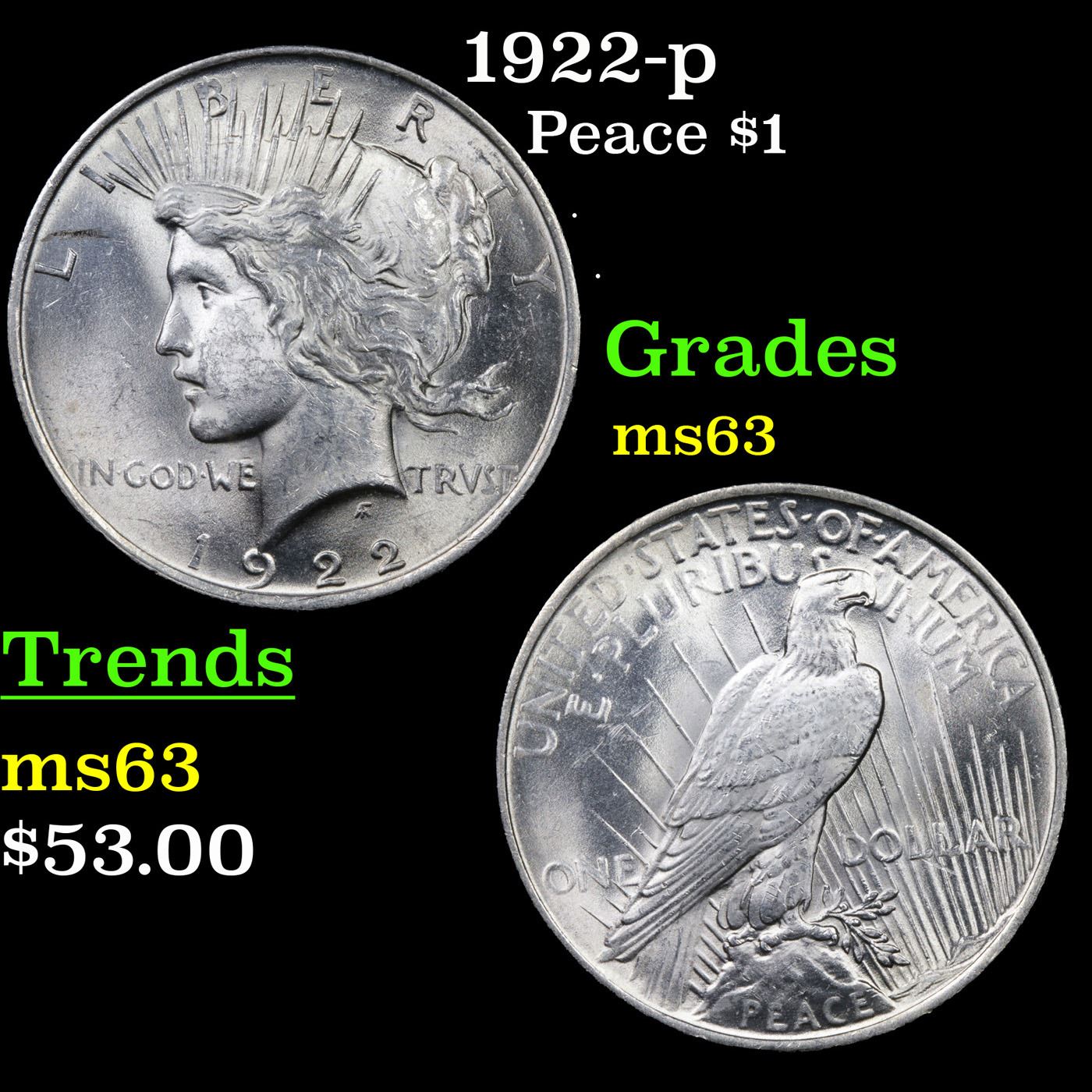 1922-p Peace Dollar $1 Grades Select Unc.
