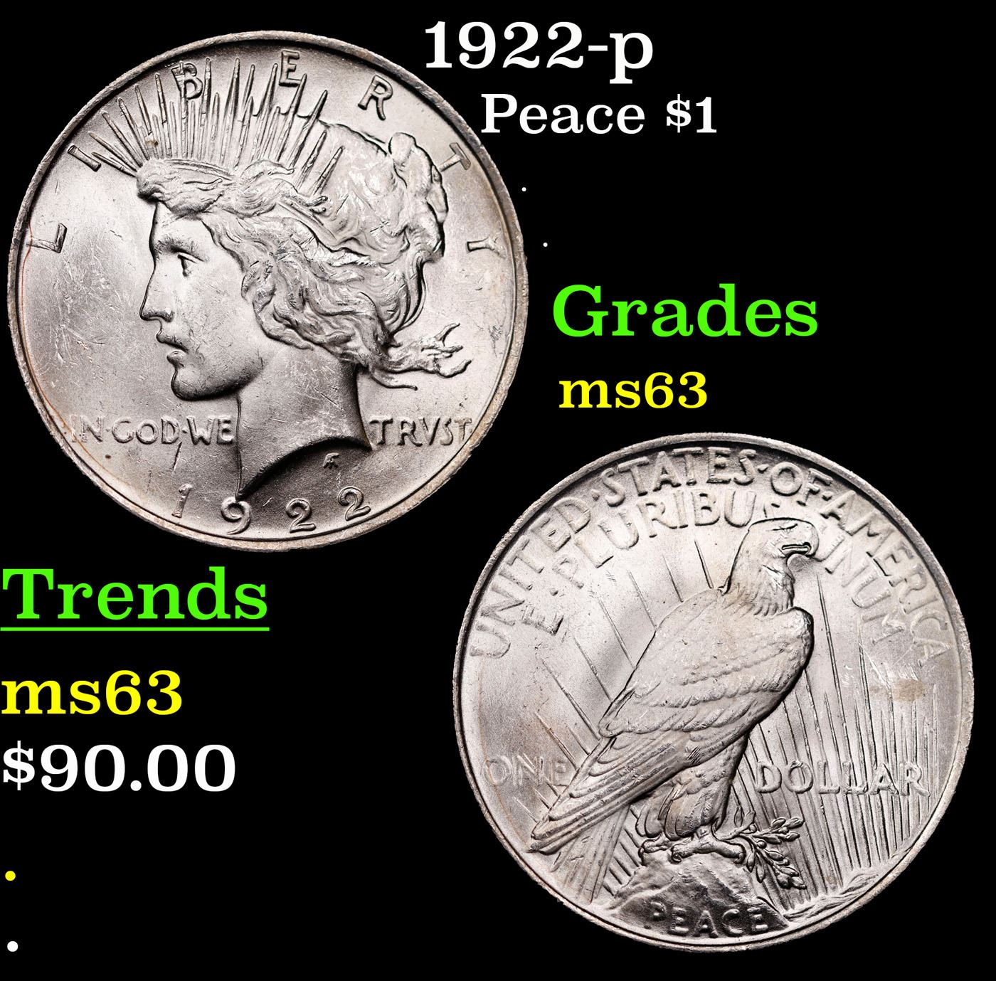 1922-p Peace Dollar $1 Grades Select Unc.