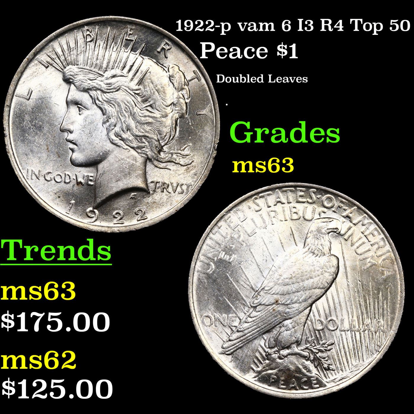 1922-p vam 6 I3 R4 Top 50 Peace Dollar $1 Grades Select Unc.