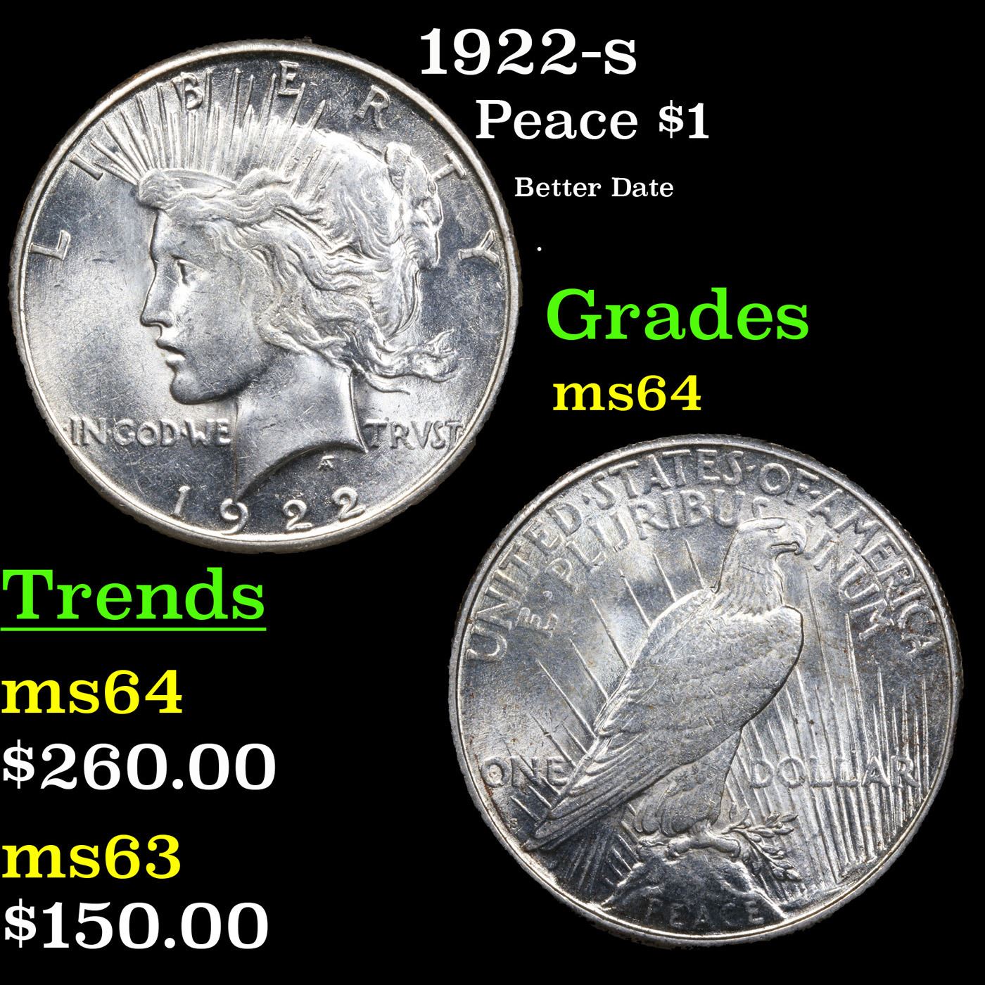 1922-s Peace Dollar $1 Grades Choice Unc.