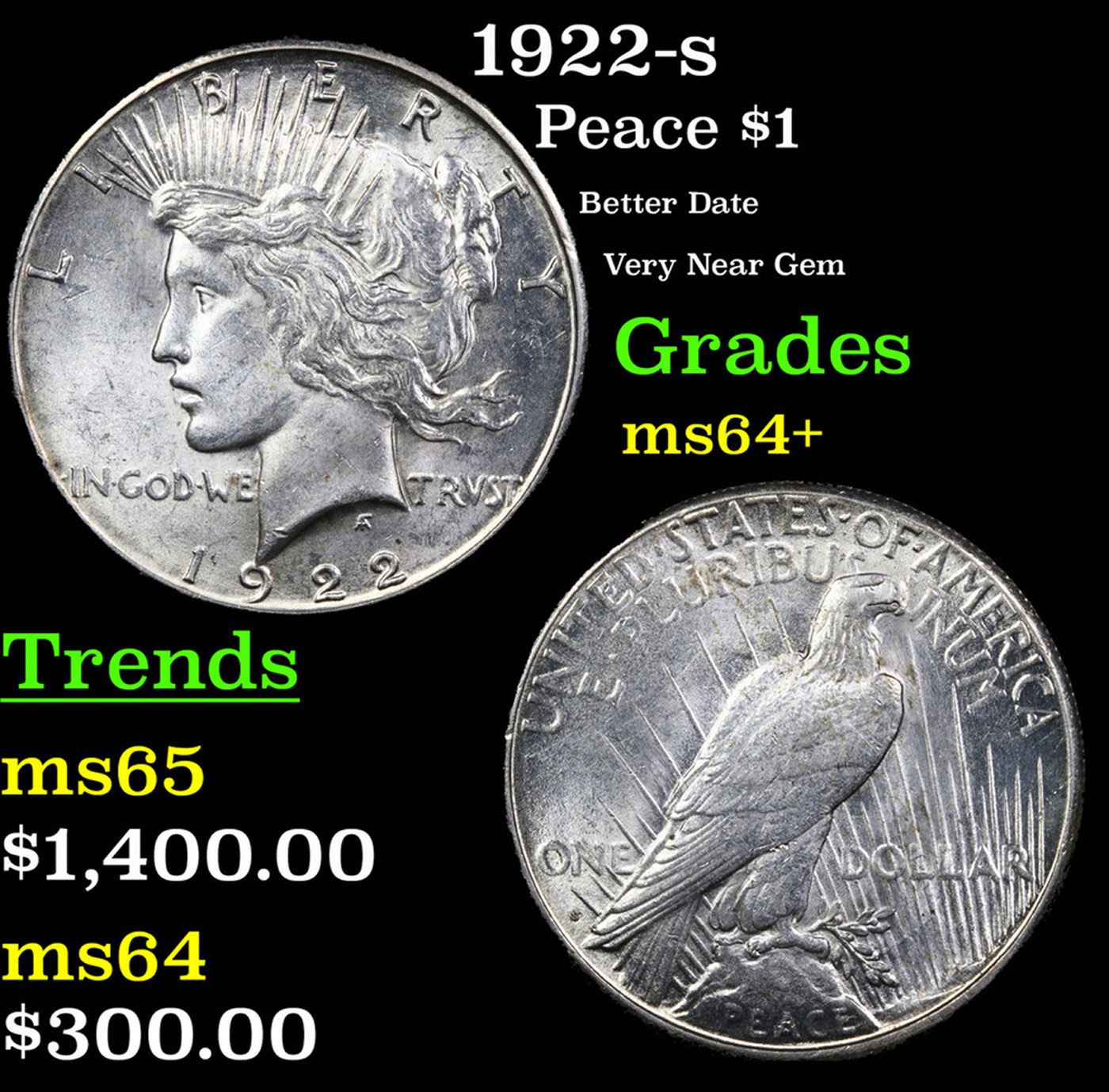1922-s Peace Dollar $1 Grades Choice+ Unc.