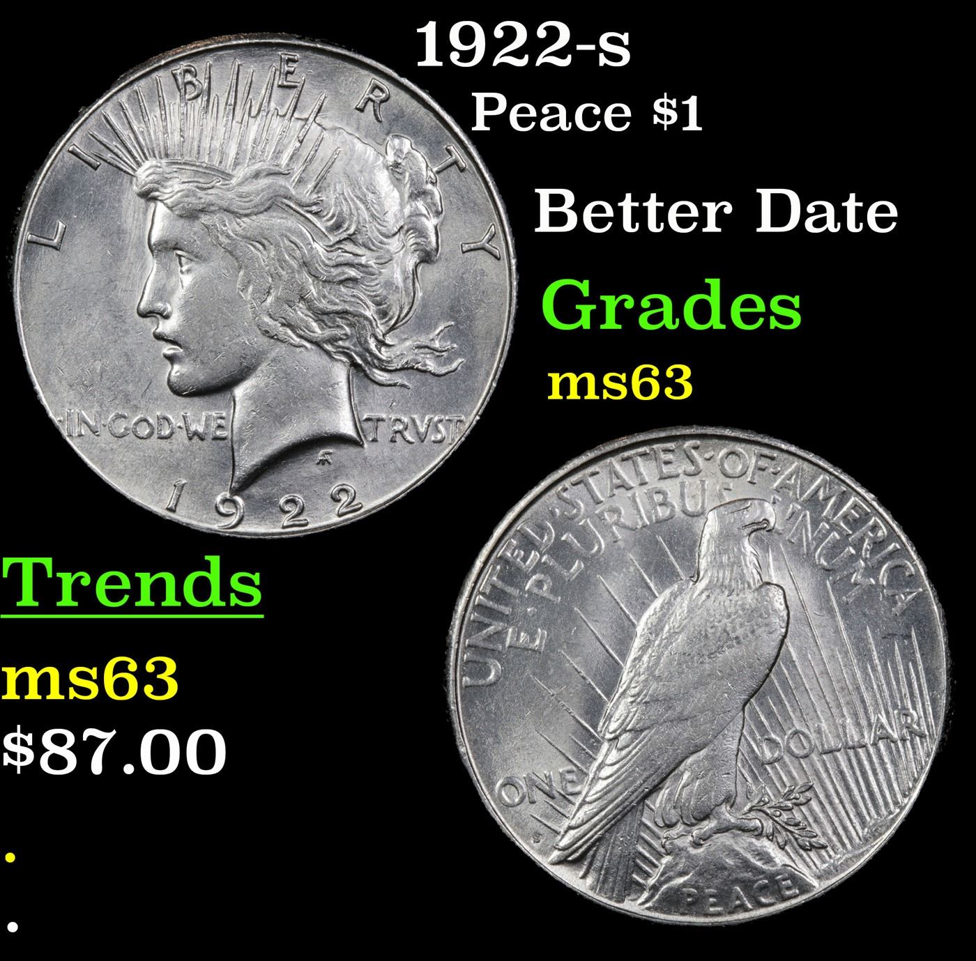 1922-s Peace Dollar $1 Grades Select Unc.