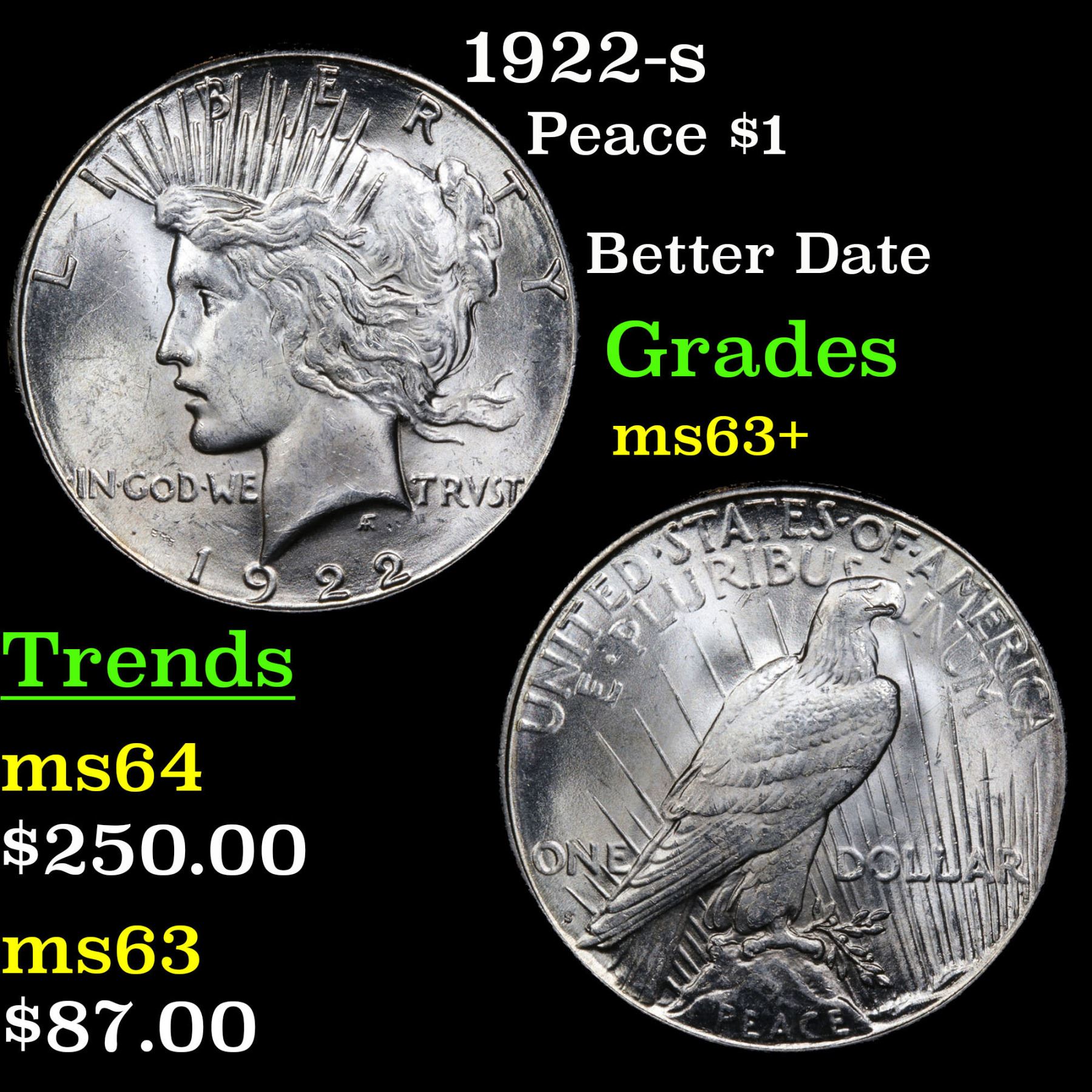 1922-s Peace Dollar $1 Grades Select+ Unc.