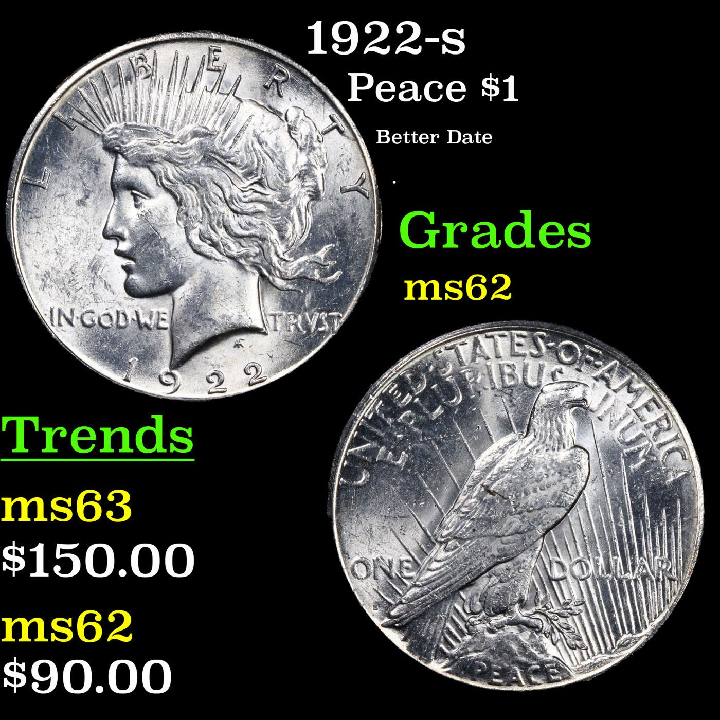 1922-s Peace Dollar $1 Grades Select Unc.