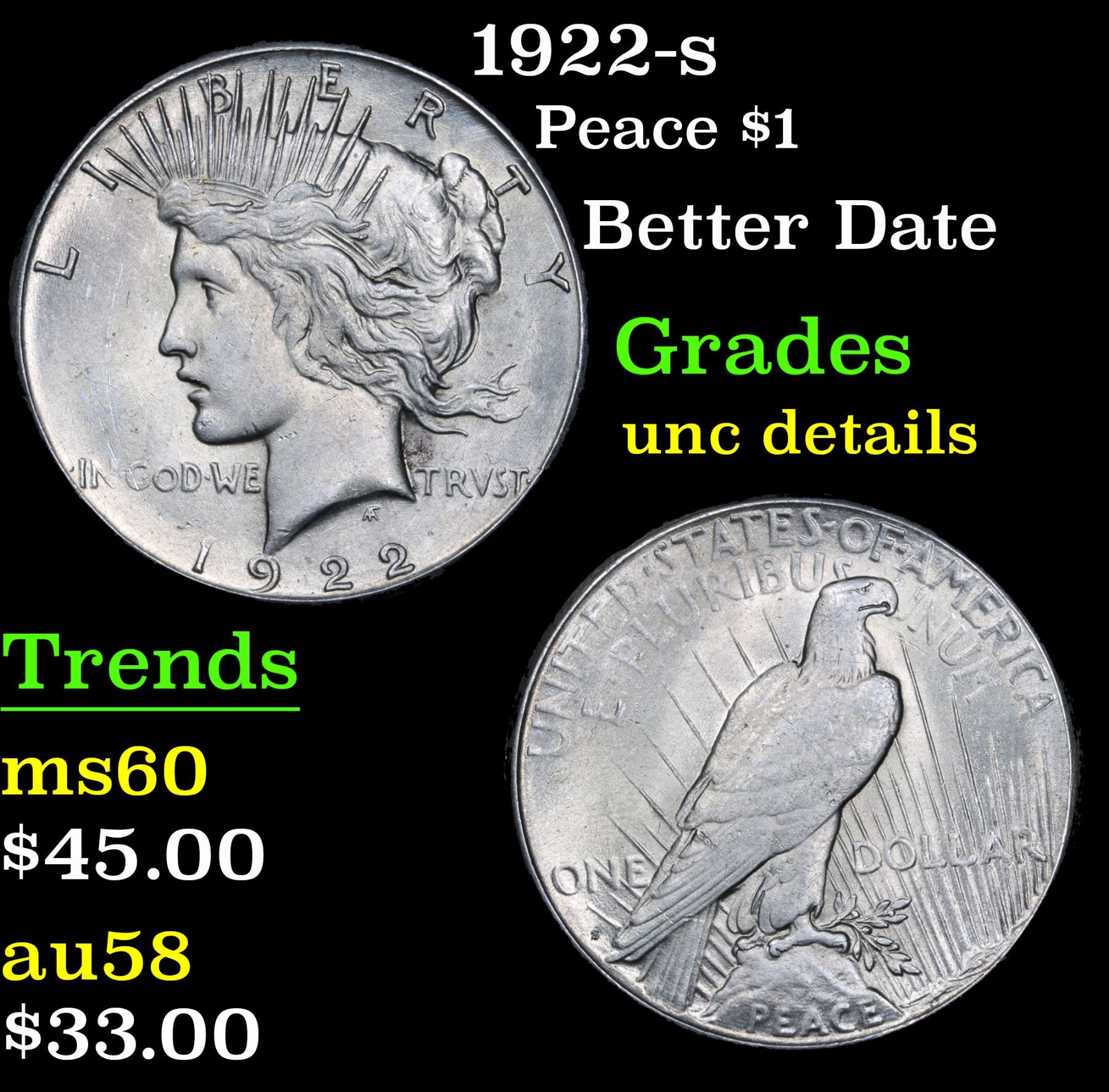 1922-s Peace Dollar $1 Grades Unc Details. Better Date