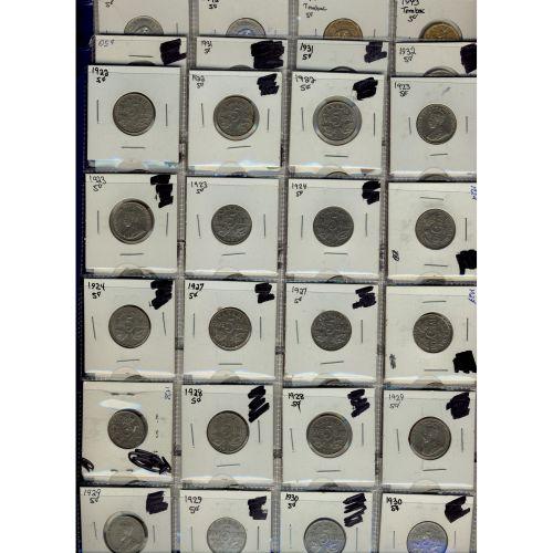 1922 to 1951 5¢. Large lot of 54 nickels. Various dates and grades. No key dates. F to MS-64