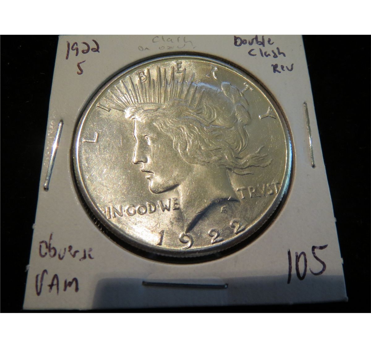 1922S Peace Silver Dollar - AU - Rev Clash above right shoulder of eagle