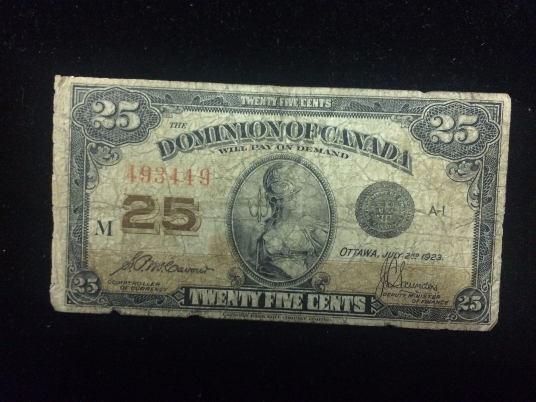 1923 $0.25 CANADIAN BANK NOTE BC-24A VG-SPECIAL