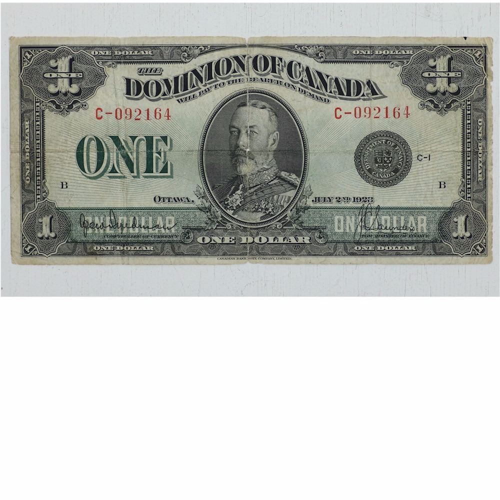 1923 $1.00 note from the Dominion of Canada with Hyndman-Saunders signatures.