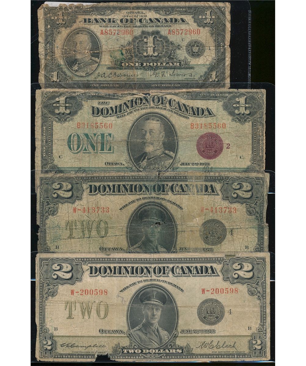 1923 $1, 1923 $2(2) & 1935 $1. Lot of 4 notes all with problems Abt Good to Good.