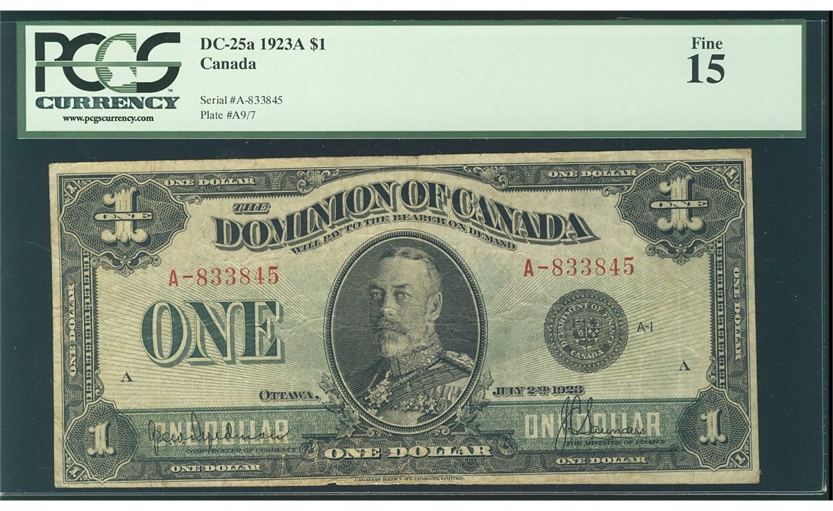1923 $1 DC-25a #A-833845 PCGS F15.