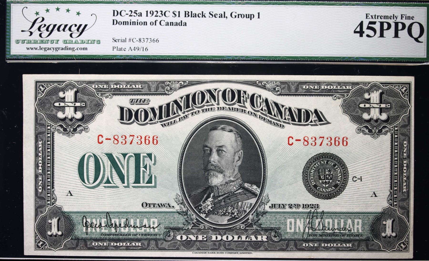 The cataloguer has taken every reasonable measure to ensure that all of the lots in this sale are as described and genuine. All raw coins and banknotes have been graded by the cataloger or the auction house which represent our best professional opinion. To grade coins and banknotes, we use Canadian grading standards, 42 years of experience and good conscience. However, grading is a subjective description in the opinion of the cataloger or the auction house. Among experts there are often differences of opinion on the grading and the eye appeal of a coin. The strike and the state of preservation are often debated. The Canadian Numismatic Company acts as an agent between consignors and buyers. The Canadian Numismatic Company does not guarantee that any coin or banknote cataloged will meet the standards, or the grade, of any third party grading companies. No warranty, whether impressed or implied. Items are as is, no warranty given. We cannot accept responsibility and waive all liability resulting in financial losses, and or incidentals accruing from the sale of any items, nor can we guarantee that items graded by third party services will grade the same if submitted to a different grading service or re-submitted to the same company. Statements by The Canadian Numismatic Company regarding the condition, the eye appeal, the strike and the population of items are for guidance only. All lots offered are sold "AS IS". Title to all lots remains with the auction house until paid for in full by the purchaser. But they are held at the risk of the purchaser once the time of the sale.