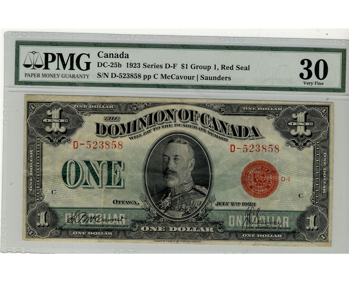1923 $1 DC-25b #D-523858 PMG VF30.