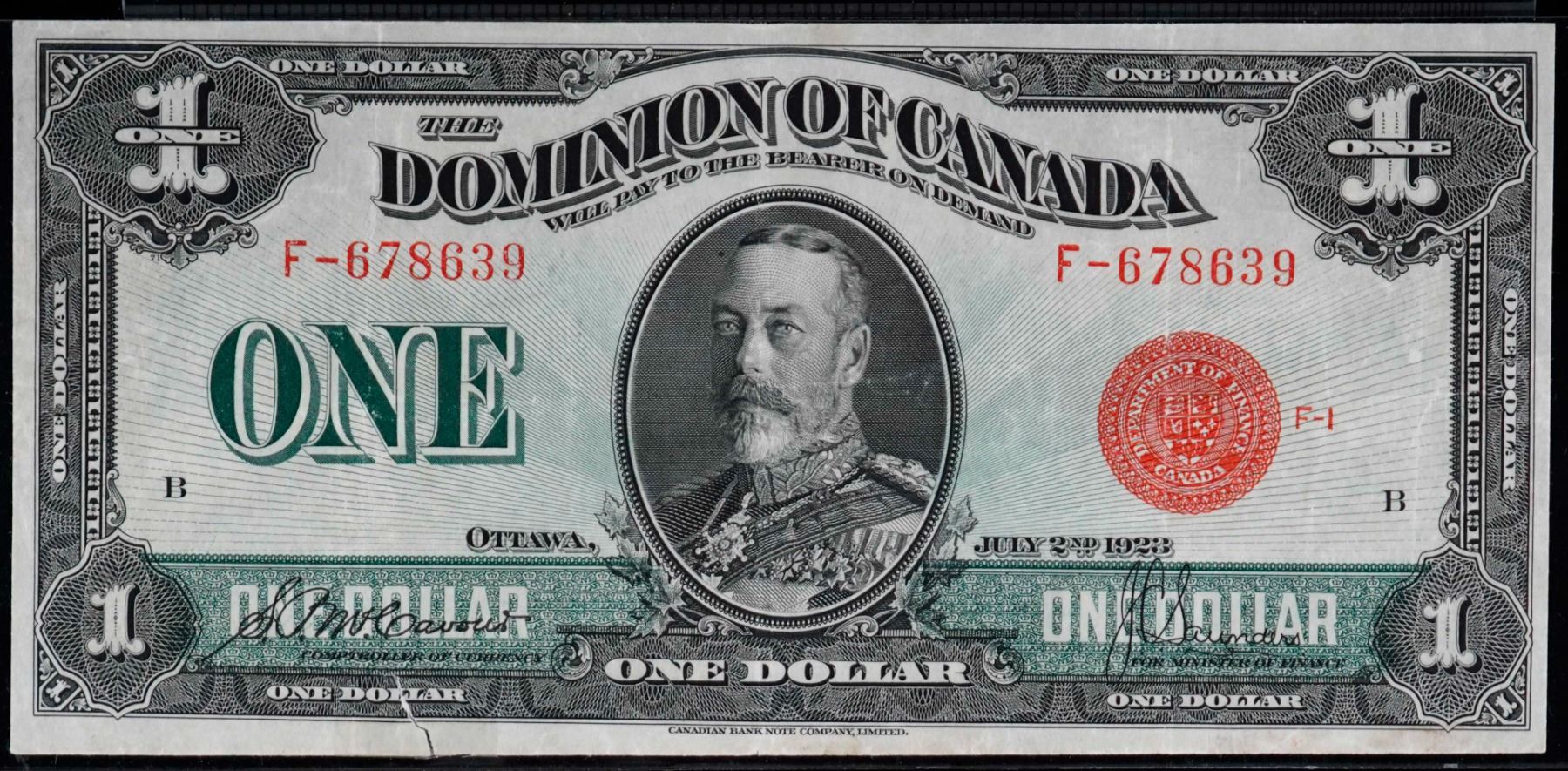 1923 $1 DC-25b "Red Seal" #F-678639 VF-EF Tear at bottom.