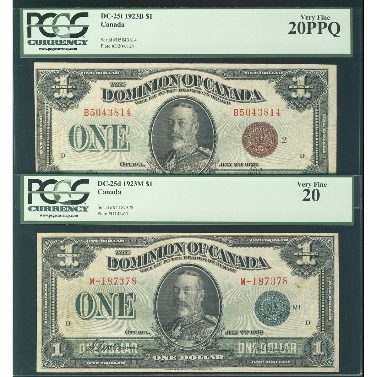 1923 $1 DC-25d & 25i PCGS VF20. Lot of 2 notes.